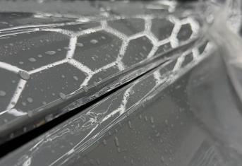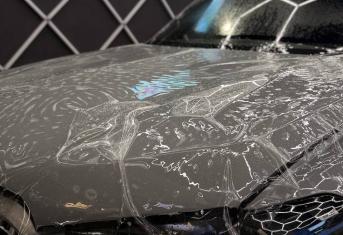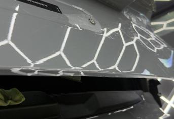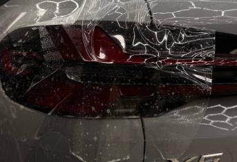 В работе применяем полиуретановую пленку NAR, толщиной 190 микрон. Эта пленка обладает функцией самовосстановления небольших царапин при высокой температуре. Клиент выбрал для своего автомобиля пакет Трасса Расширенный. Более подробно с пакетами оклейки вы можете ознакомится в соответствующем разделе на нашем сайте.