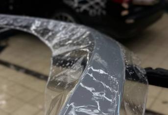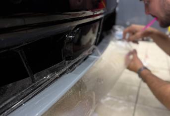 - Арматурные работы – снимаем решетку, бампер из-за его сложной формы. Это необходимо чтобы сделать максимально качественные подвороты пленки.