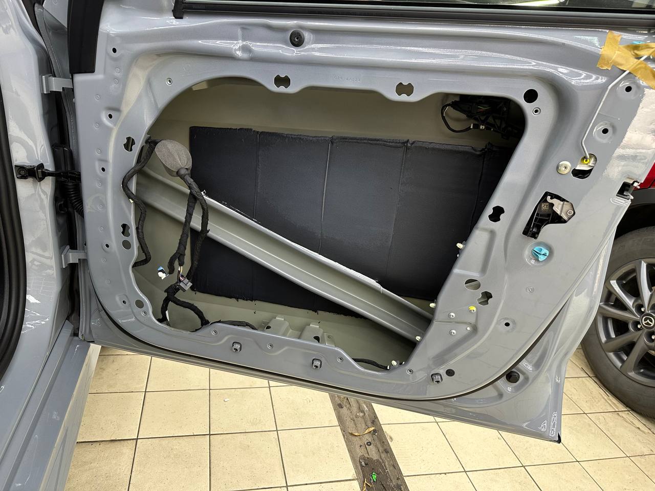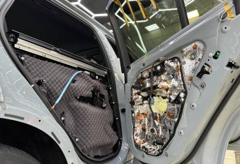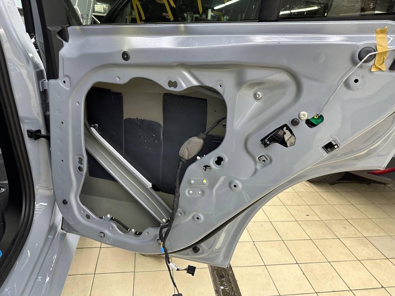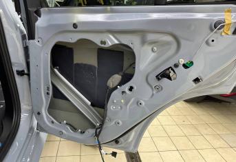 Начинаем работу с разборки дверей, подготовки поверхности и обезжириванию. Все работы по демонтажу пластика выполняются специальным инструментом. Мы гарантируем целостность клипс, креплений и отсутствие различного рода царапин, задиров на обшивках.