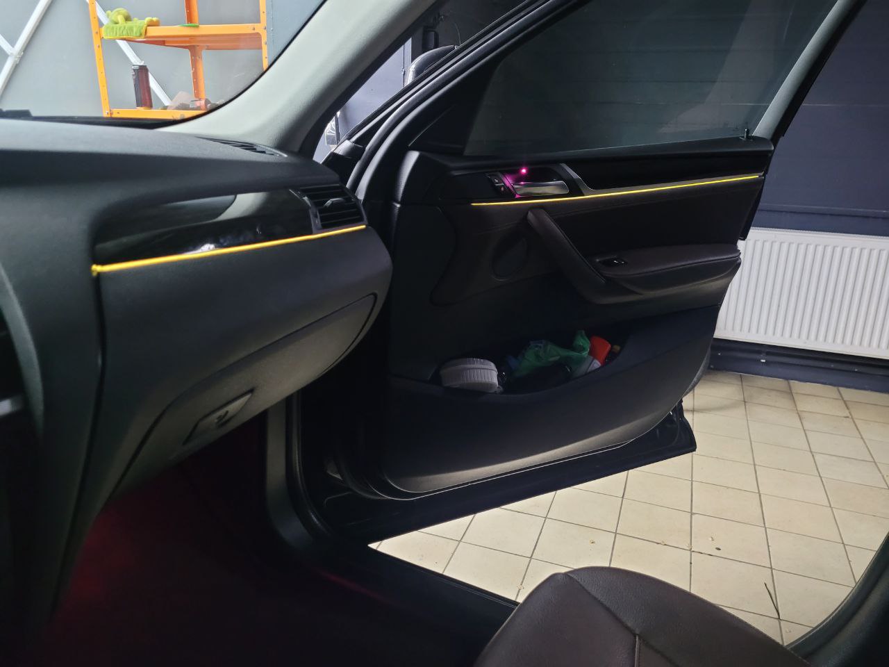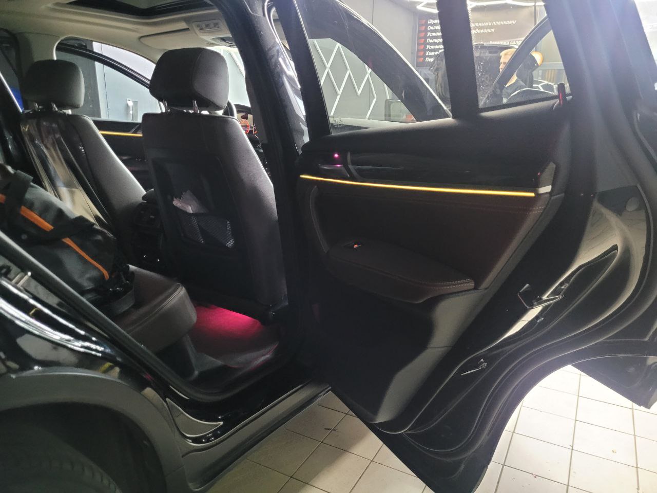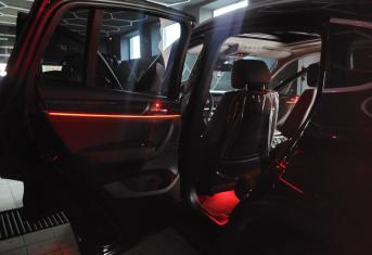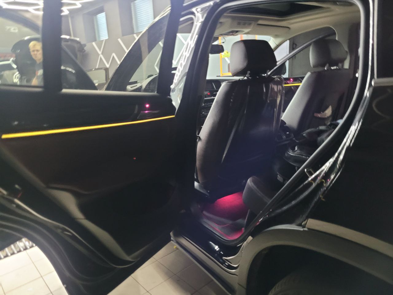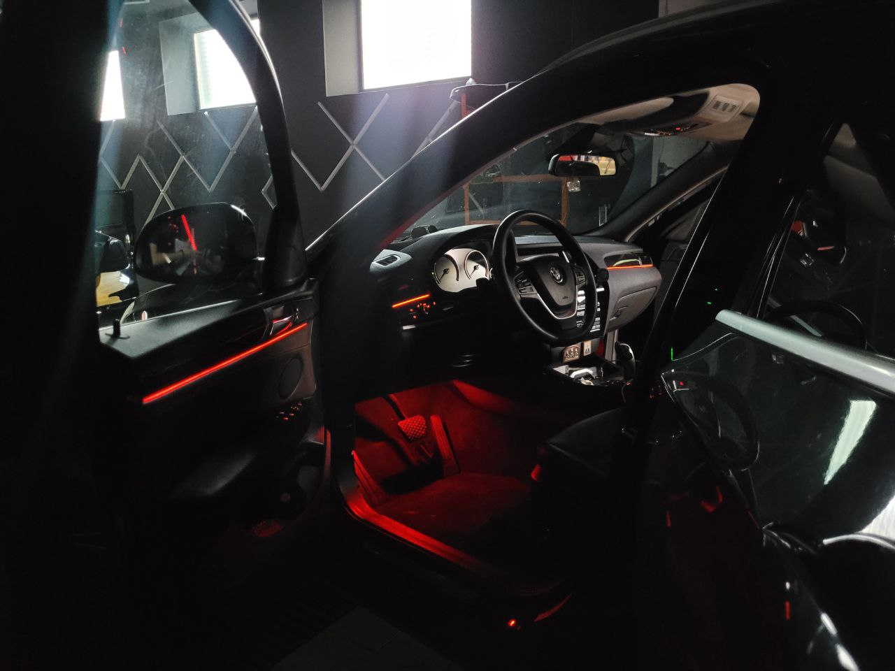 BMW X6 приехал на работы по установке дополнительного оборудования, а в частности установка атмосферной подсветки салона с управлением из приложения смартфона.