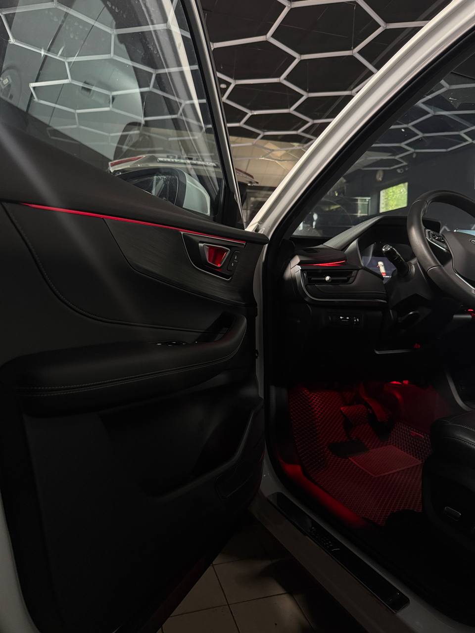 - В каждой двери - нить световода, подсветка в области ручек открывания дверей, освещение дверных карманов;