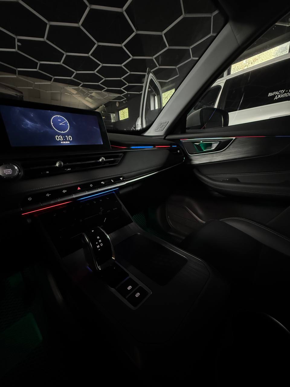 - Подсветка области ног пассажиров и водителя.