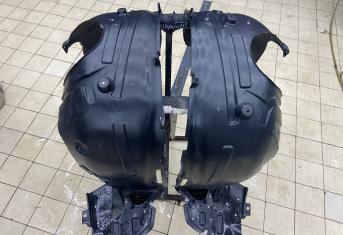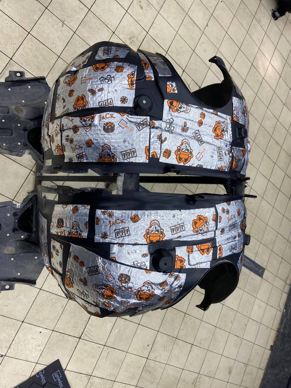 Все подкрылки в авто пластиковые, предварительно очистив, мы монтируем виброизоляцию Шумофф Jack и шумоизоляцию Шумофф Комфорт 6. Затем локеры обрабатываем жидким полимером и готов авто к выдаче.