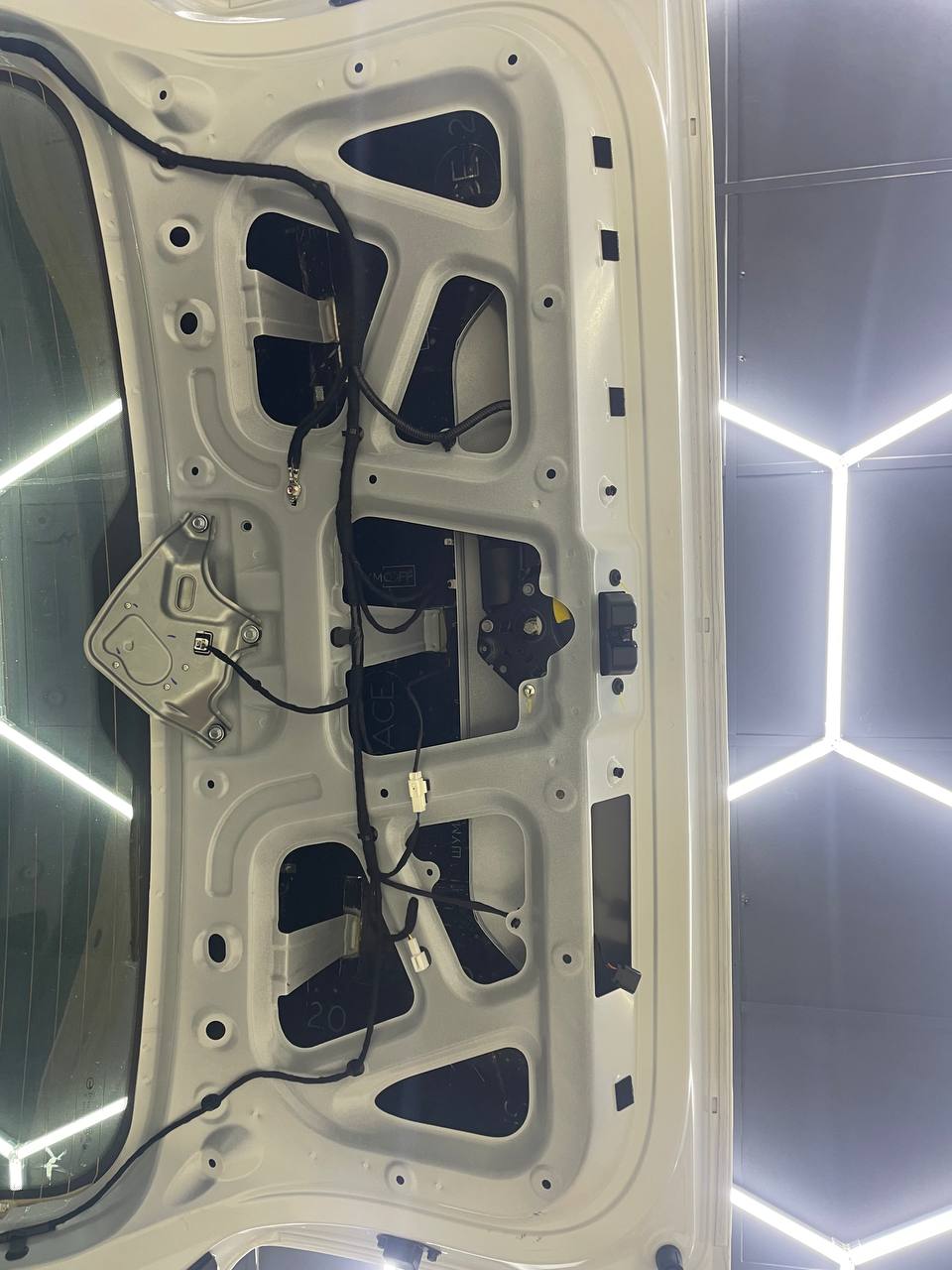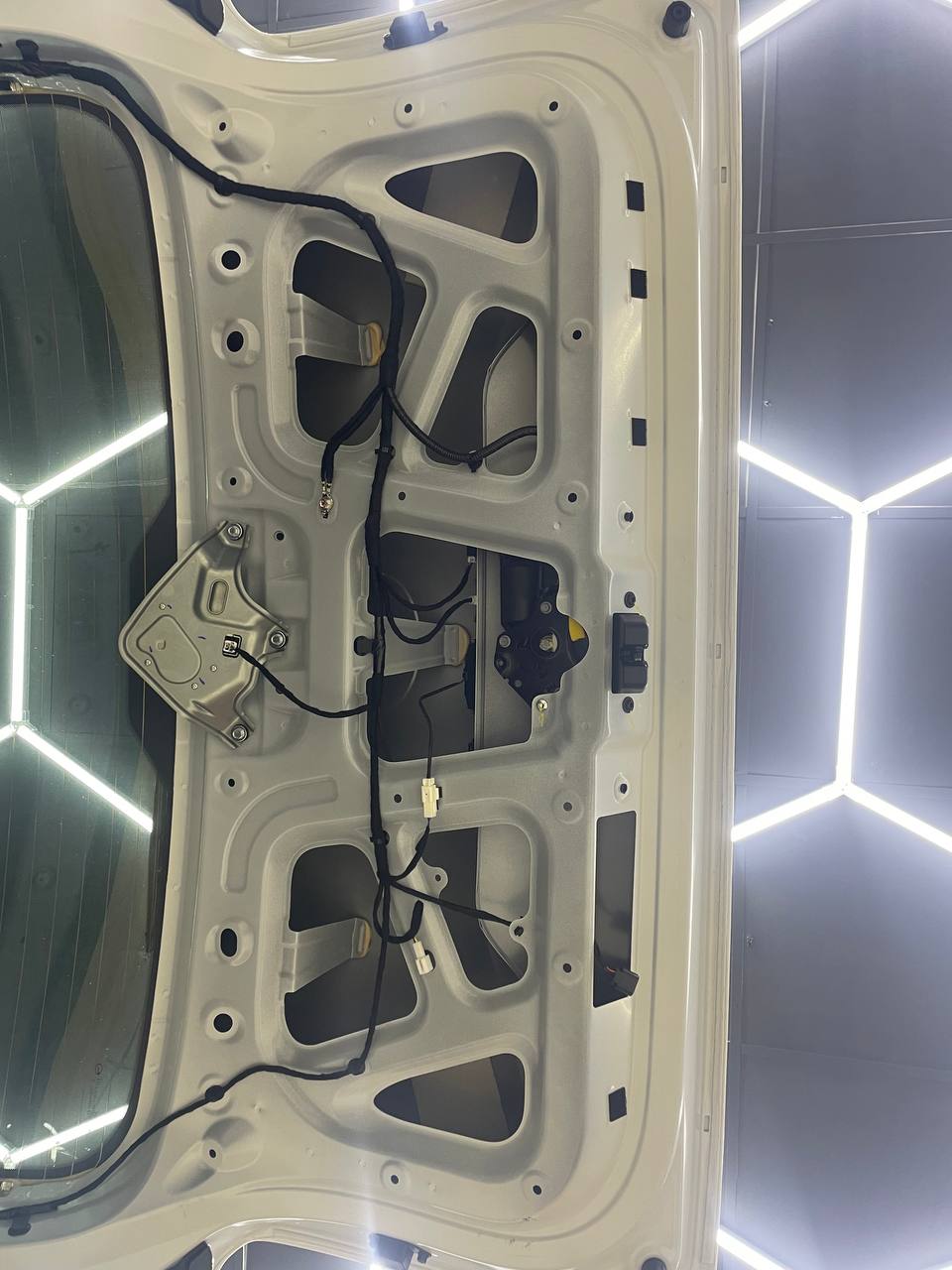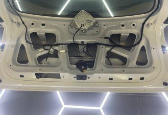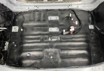 Крышка багажника обрабатывается Шумофф Space 2.0. На обшивку крышки наносим шумопоглотитель Шумофф Герметон A15. По канту обшивки и клипсы обрабатываем Шумофф Absorber 5. Всю проводку на крышке обрабатываем Шумофф Specific.