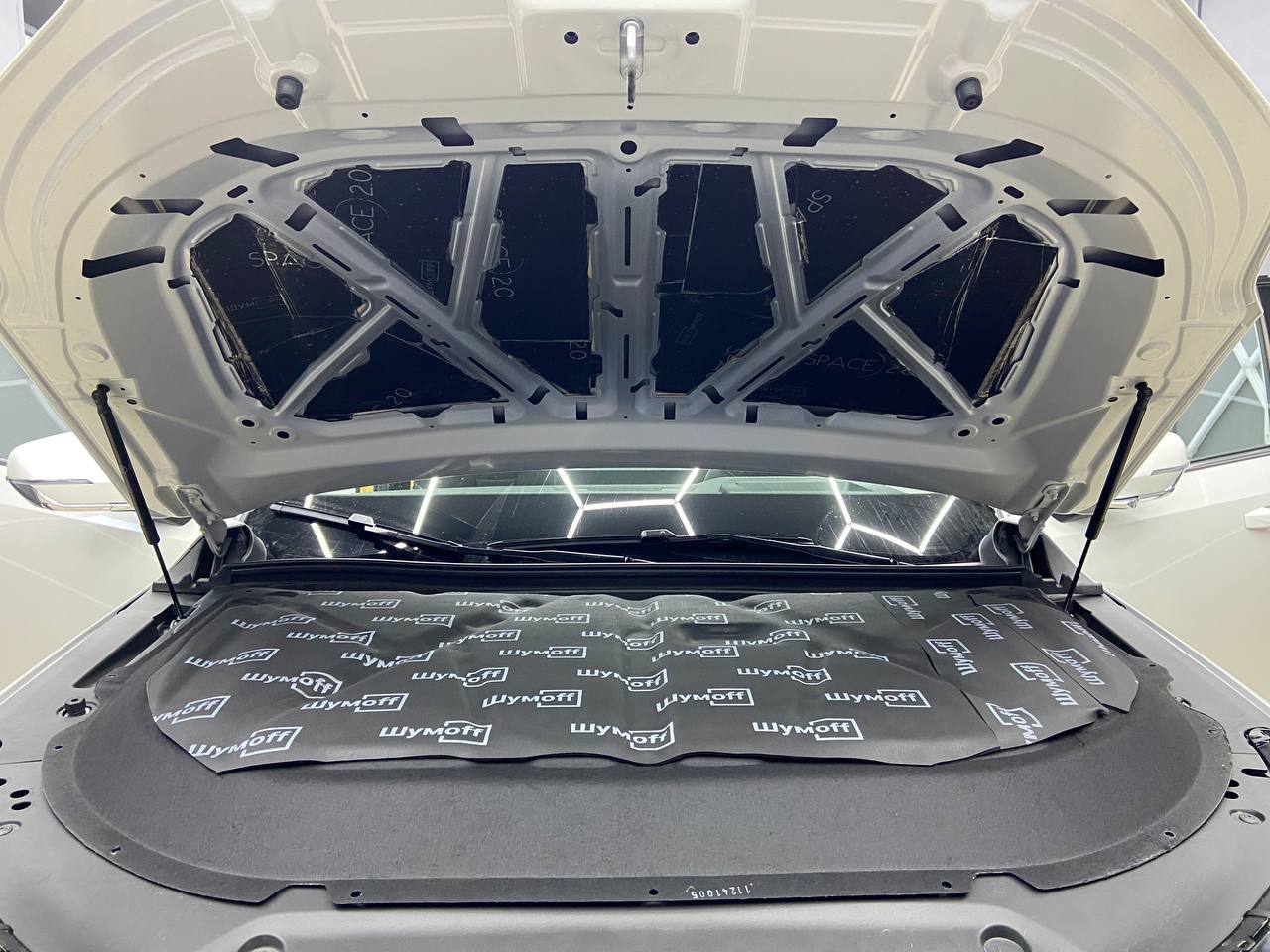 При заказе комплексной шумоизоляции капот и крышку багажника мы обрабатываем совершенно бесплатно. В технологические отверстия капота монтируем Шумофф Space 2.0, а на обшивку Шумофф Комфорт 3.
