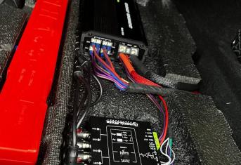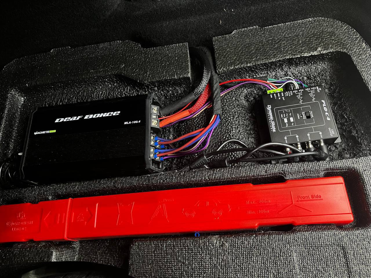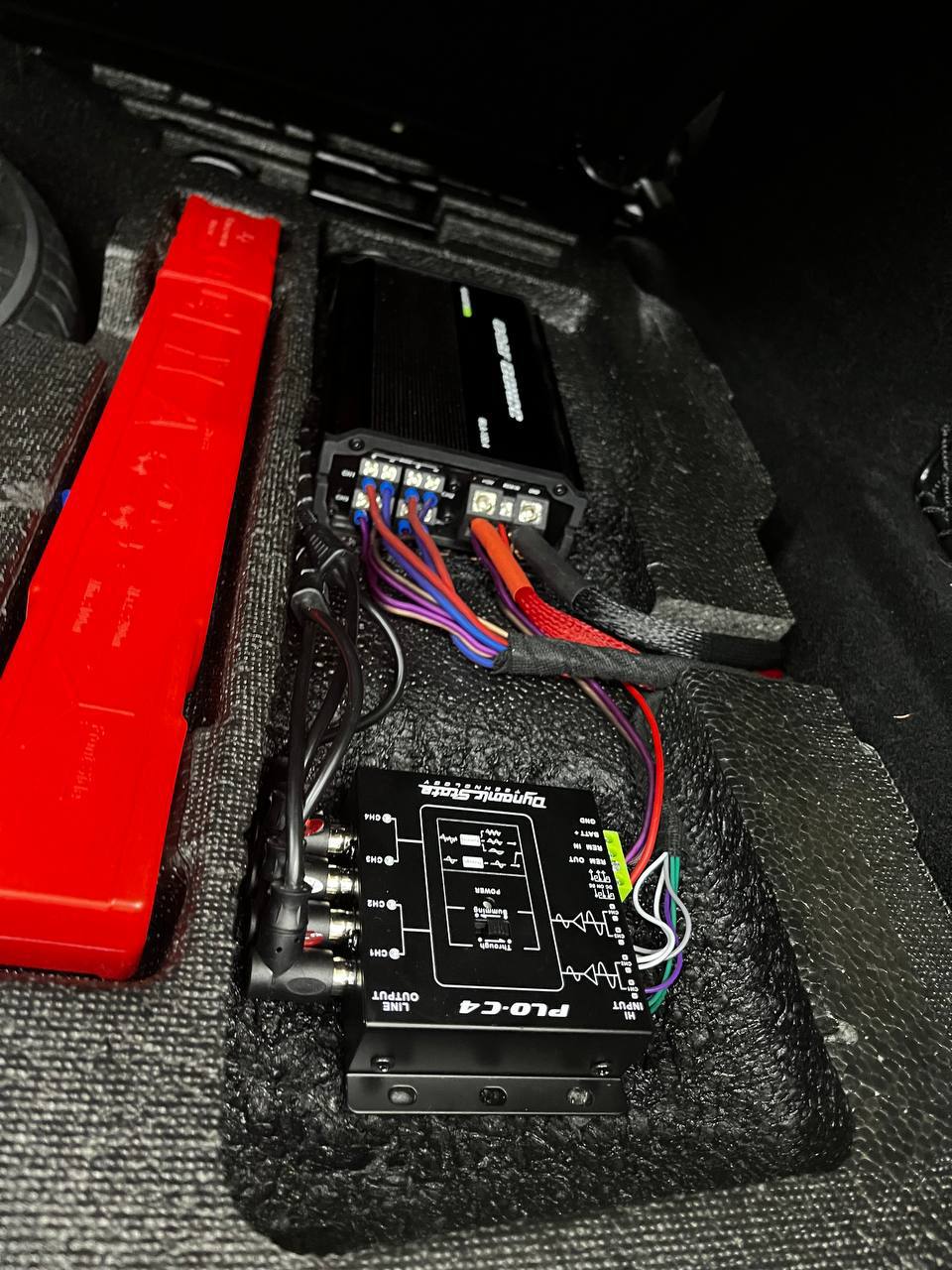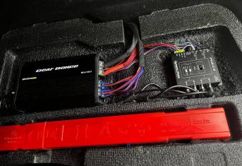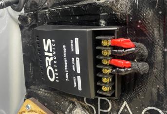 На данном автомобиле мы установили 4-х канальный усилитель и моноблок от Oris. Для того чтобы сохранить штатное головное устройство и запустить систему от него, мы применили 6-ти преобразователь линейного сигнала.