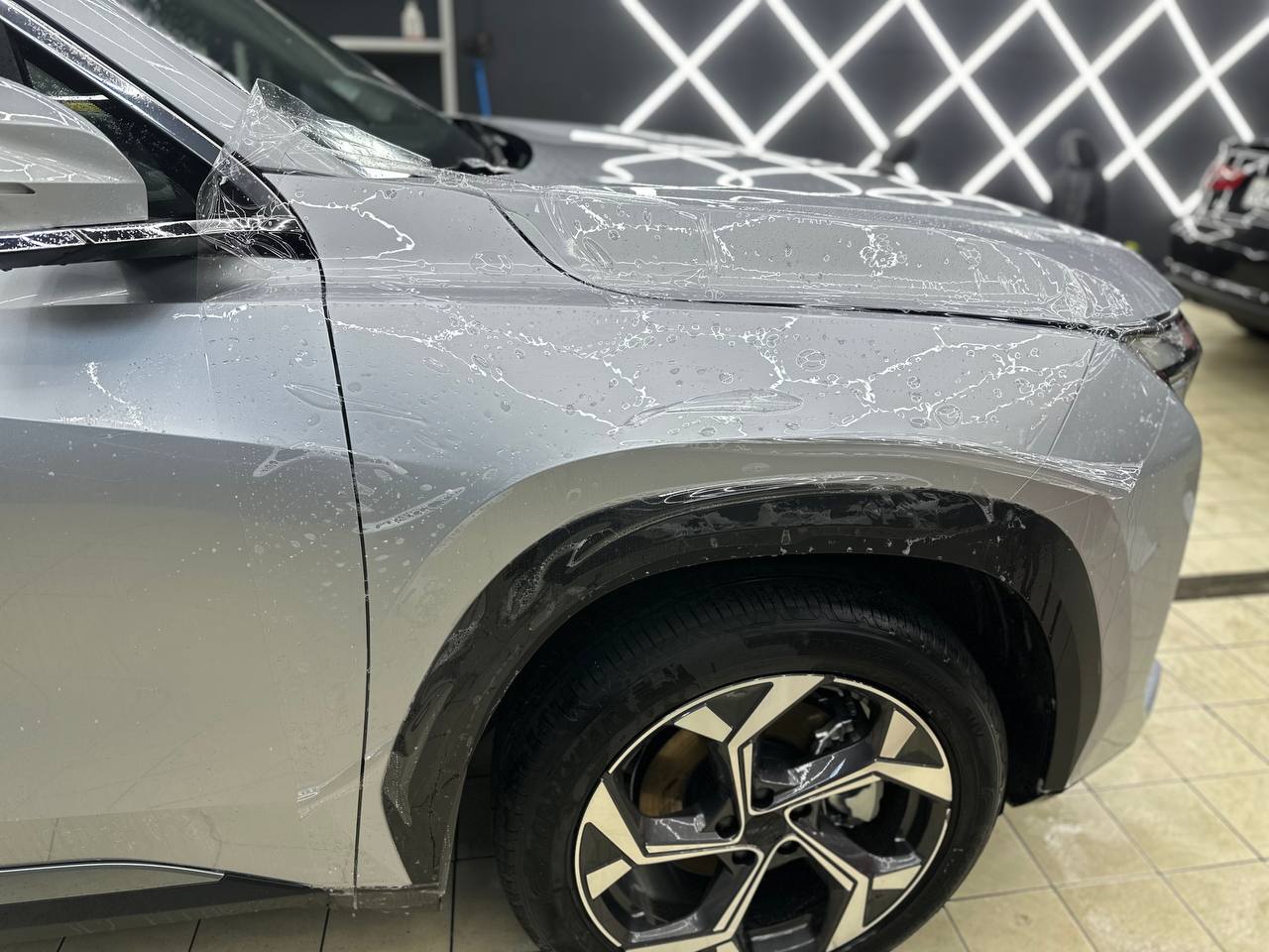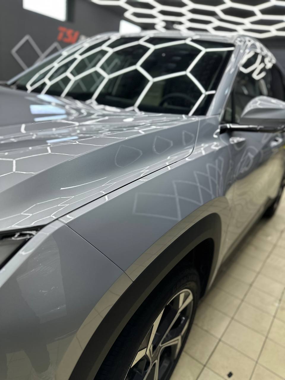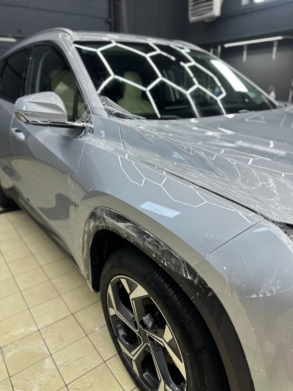 Geely Cityray приехал на работы по оклейке пленкой кузова. Команда TSIauto рекомендует бронировать пленкой наиболее уязвимые места новых автомобилей, это защитит элементы кузова от сколов, царапин и мелких ДТП. Пленку гораздо легче заменить в будущем, без поиска мест где смогут хорошо окрасить поврежденный элемент и при последующей продаже авто не будет торга с покупателем. На самом деле пленка имеет больше преимуществ, про которые мы расскажем ниже.