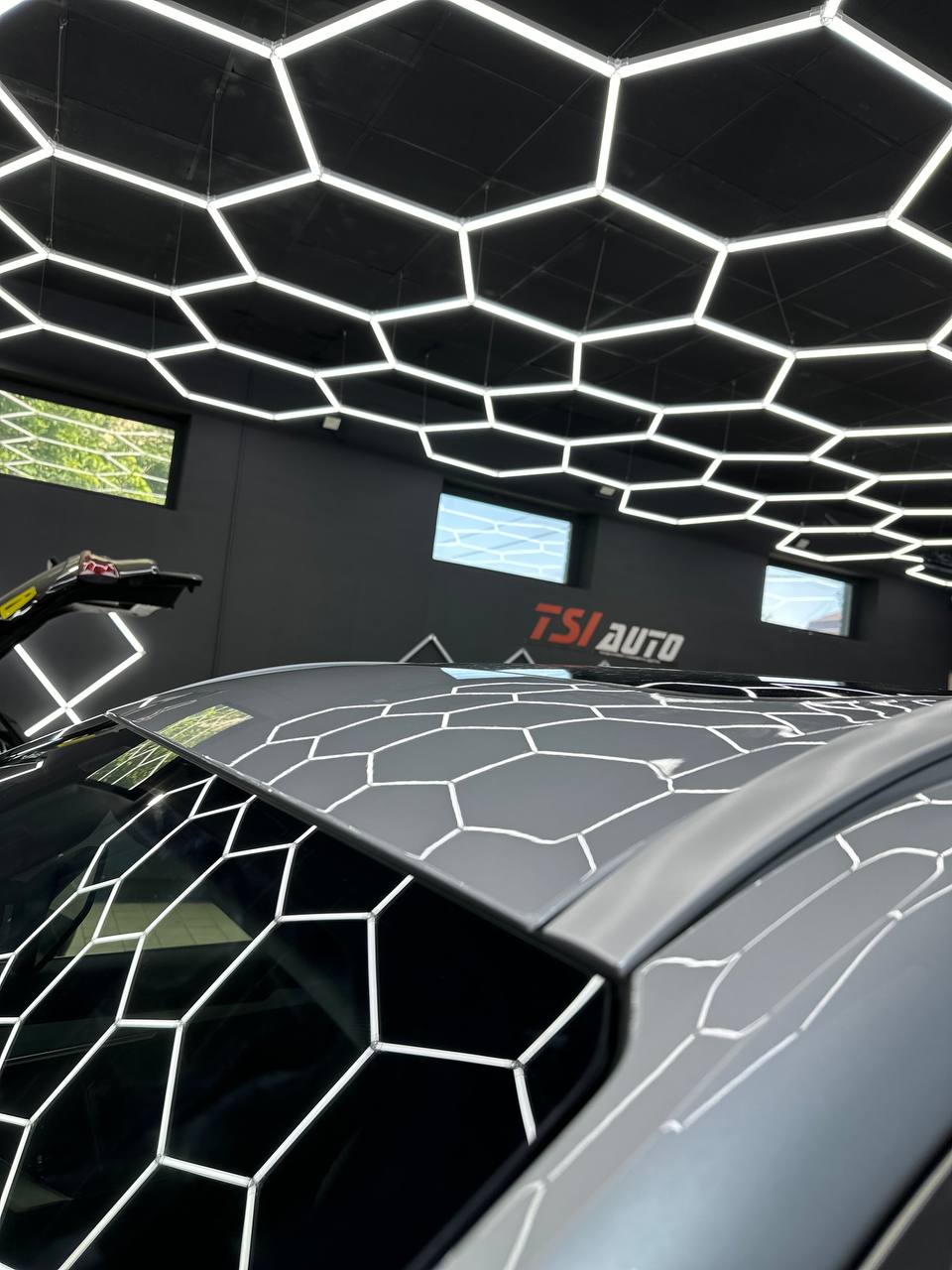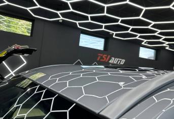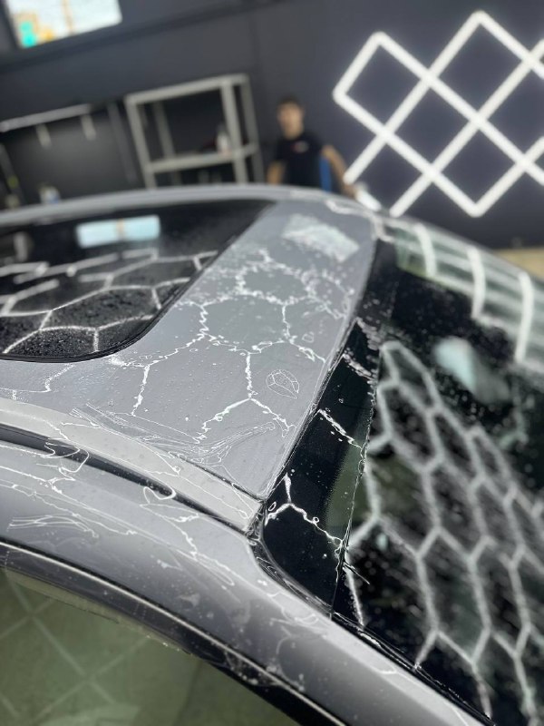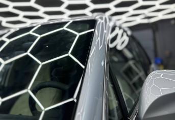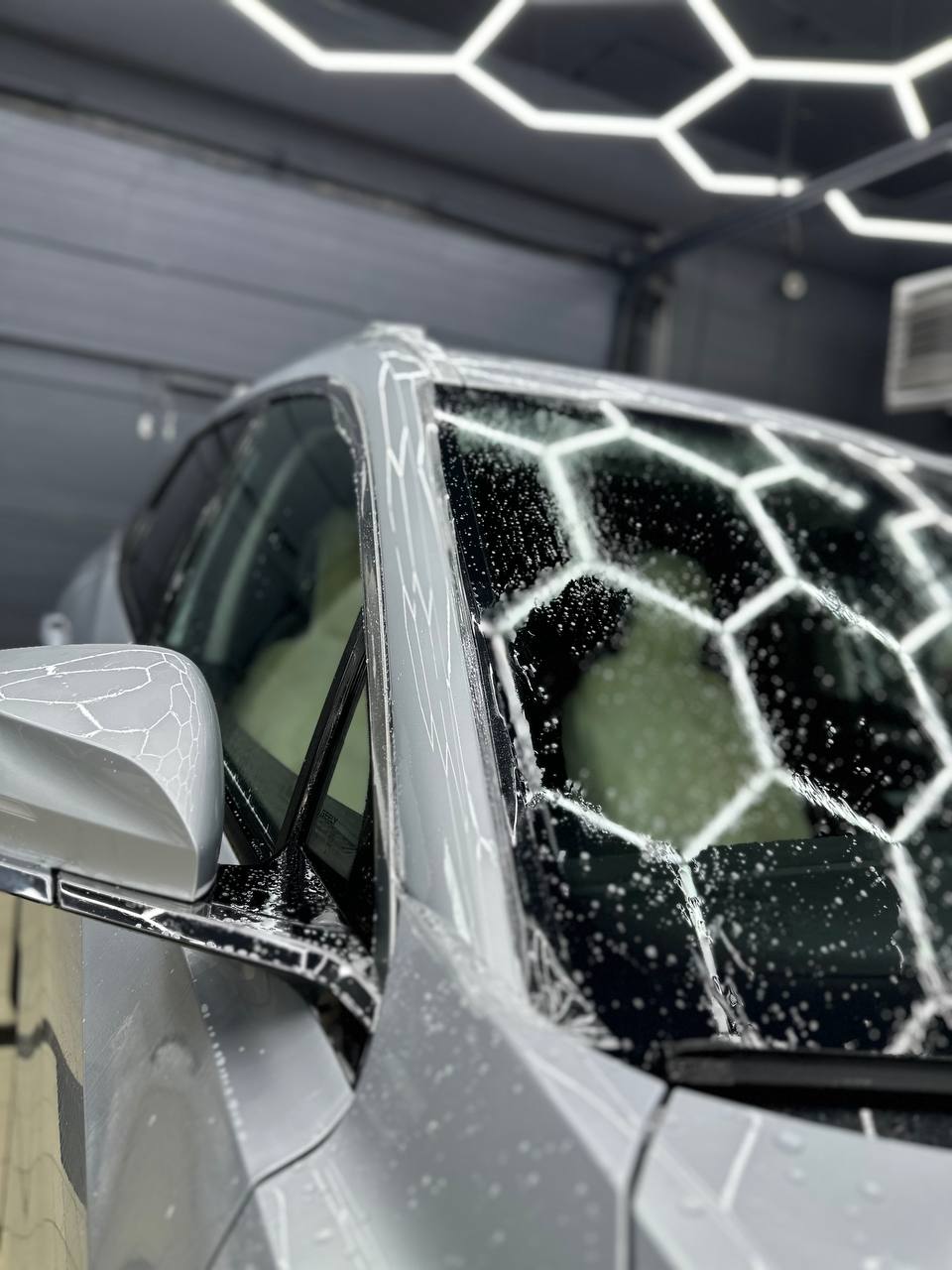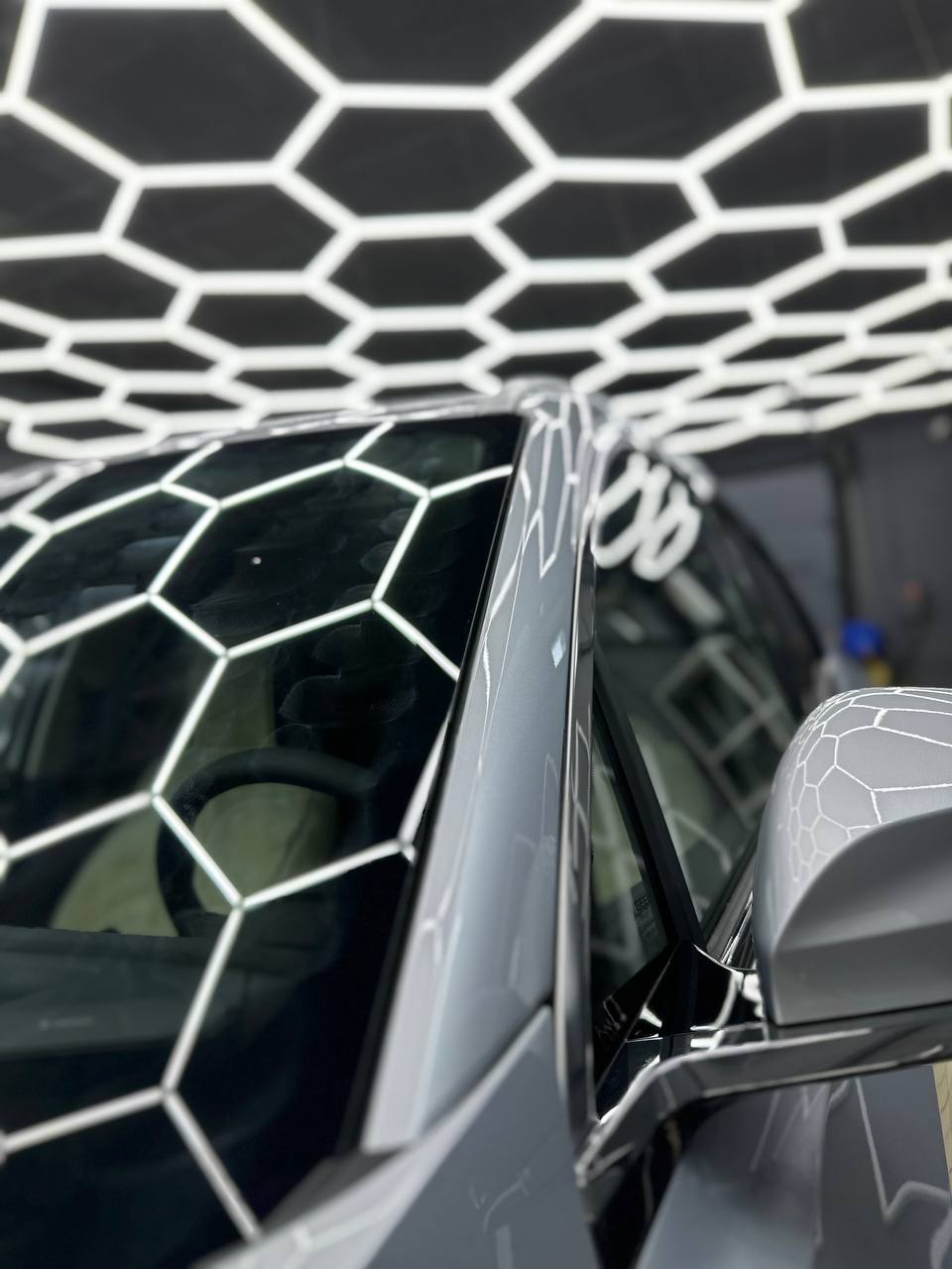 Далее не о процессе, а о конечном результате который получается на данном авто. Автомобиль будет меньше пачкаться, пленка обладает высоким гидрофобным эффектом и грязь не будет задерживаться на кузове. Ну и самое главное это защита, каждый оклеенный элемент выполнен с подворотом пленки по периметру. Сколы и царапины больше не угрожают оклеенным кузовным элементам данного автомобиля, и если вдруг произойдет неприятная ситуация с мелким ДТП к примеру во дворе, с большей долей вероятности этот вопрос решиться заменой пленки на отдельном элементе. Так же автомобиль обрел на долго гарантированный блеск, так как пленка имеет самозаживляющий эффект и мелкие риски и царапинки будут затягиваться под воздействием температуры.