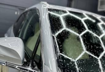 В работе применяем полиуретановую пленку NAR, толщиной 190 микрон. Эта пленка обладает функцией самовосстановления небольших царапин при высокой температуре. Клиент выбрал для своего автомобиля пакет Трасса Расширенный. Более подробно с пакетами оклейки вы можете ознакомится в соответствующем разделе на нашем сайте.