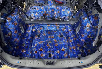 На внешний металл крышки багажника наносим виброизоляцию Шумофф Jack. На обшивку монтируем Шумофф Jack и шумопоглотитель Flex А15. Материалы подобраны по минимальному весу, дабы не создавать излишнюю нагрузку на крышку и она не закрывалась под весом материала. По канту обшивки и клипсы обрабатываем Шумофф Absorber 5. Проводку обрабатываем Шумофф Specific.