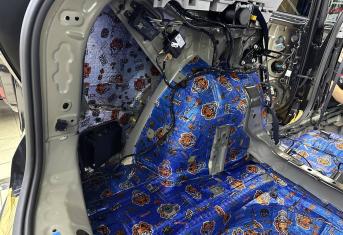 Штатная шумоизоляция в Geely Cityray уложена выборочно. Её настолько мало, что никакого эффекта он не приносит. Виброизоляция есть на полу салона и багажника, задних арках. Ниже вы можете увидеть все что скрыто под декоративными элементами салона. Перед началом работ мы в обязательном порядке проверяем заводскую шумоизоляцию на качество укладки. Плохо проклеенные участки заводской виброизоляции демонтируем. После этого обезжириваются все поверхности и мы приступаем к монтажу новых шумоизоляционных материалов.