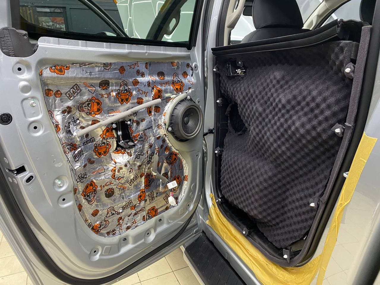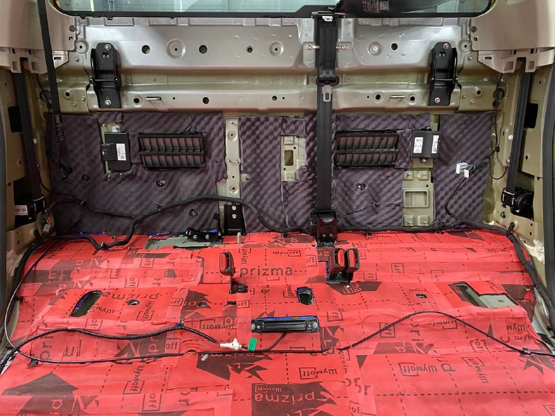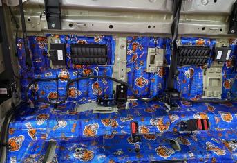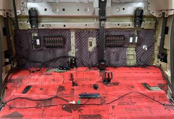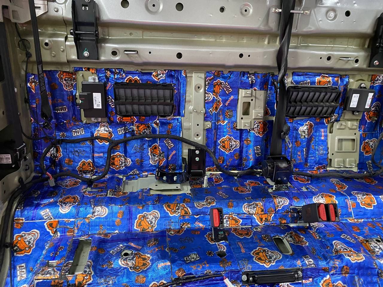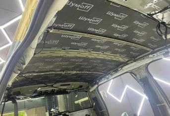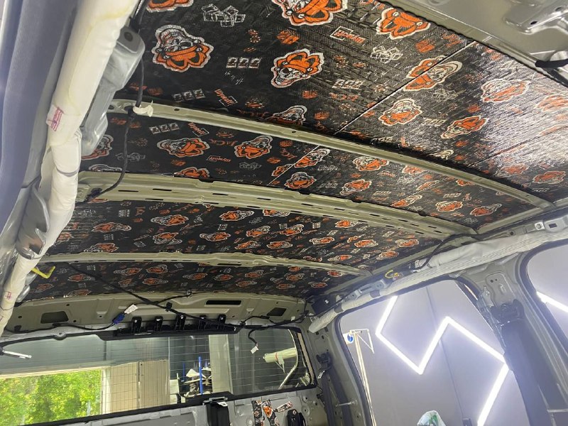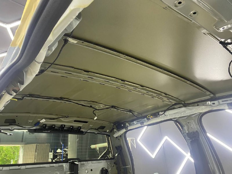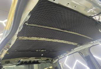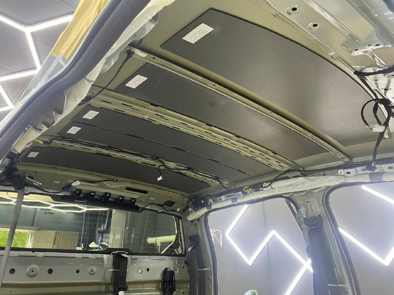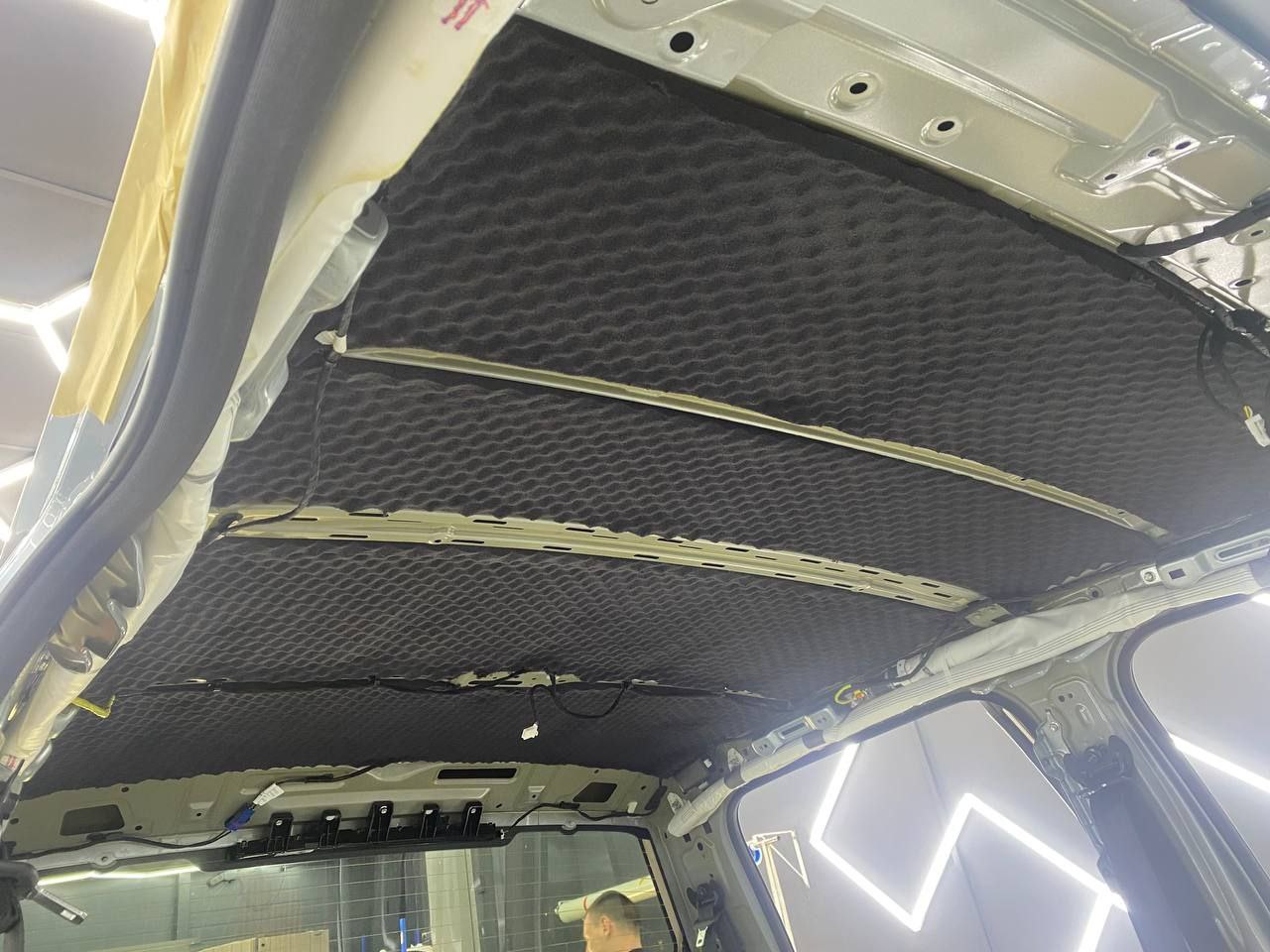 Штатная шумоизоляция в Поер есть и её довольно много. На крыше большие пластины теплоизолятора, а на обшивке есть синтетическая ткань. По полу салона и багажнику есть участки вибродемпфера. Двери, можно сказать, пустые. Местами он плохо прилегал к металлу, и мы его демонтировали. Мы можем сделать этот авто кратно тише и комфортнее для пассажиров, чем мы и занимались.