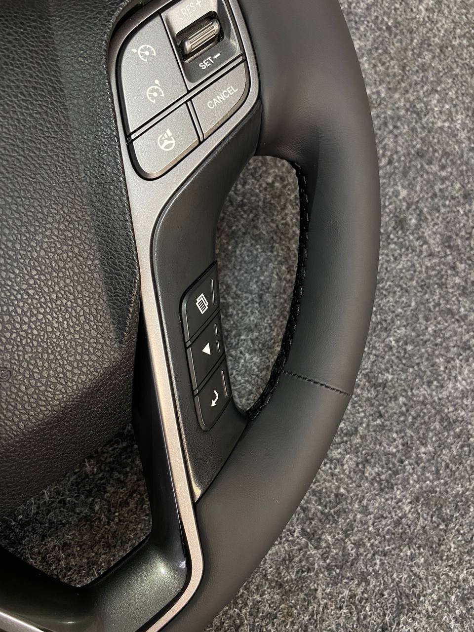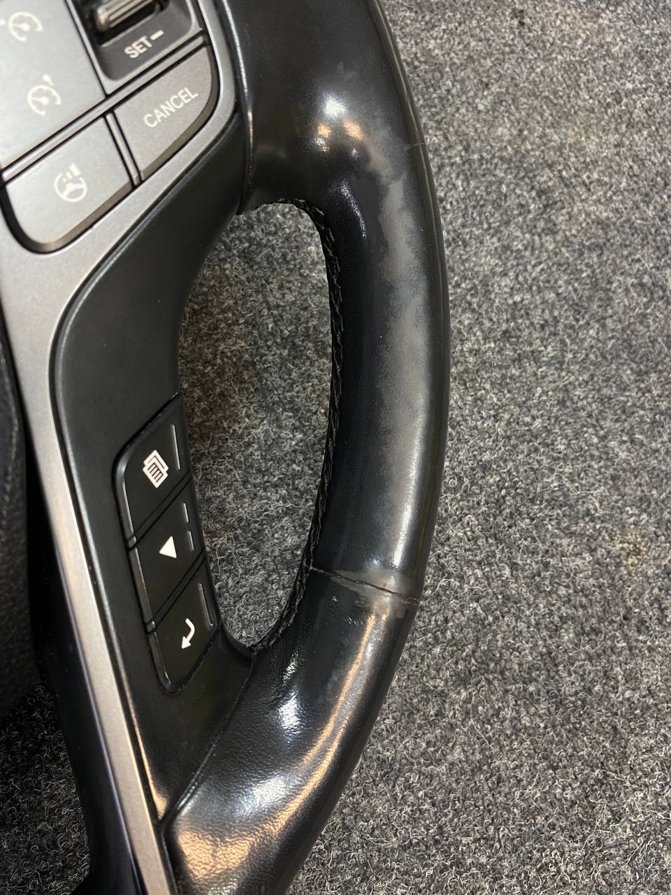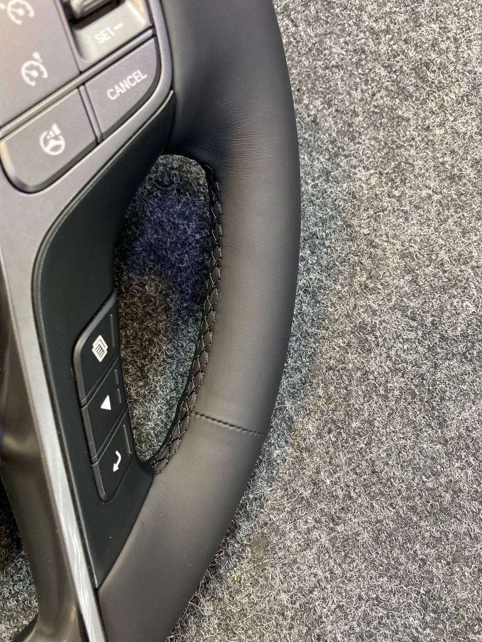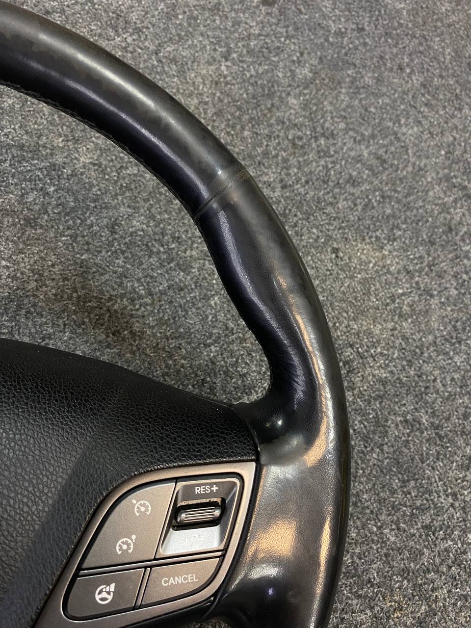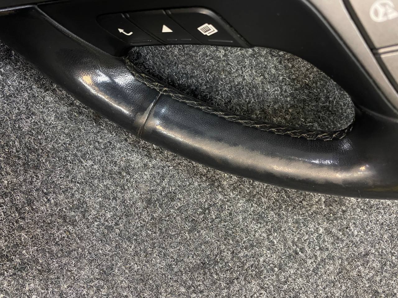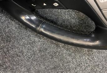 За время эксплуатации кожа на руле стала гладкой, появился блеск и отслоение материала. При перетяжке руля Hyundai Santa Fe мы применили гладкую натуральную кожу. Клиент пожелал сохранить заводской шов "макраме". В итоге получился стильный и очень приятный на ощупь руль, который прослужит долгие годы при правильном уходе за ним. Рекомендуем проводить плановую чистку кожаного руля, для сохранения на долгое время в первозданном виде, раз в 3-4 месяца и это можно сделать в нашем детейлинг-центре TSIauto.