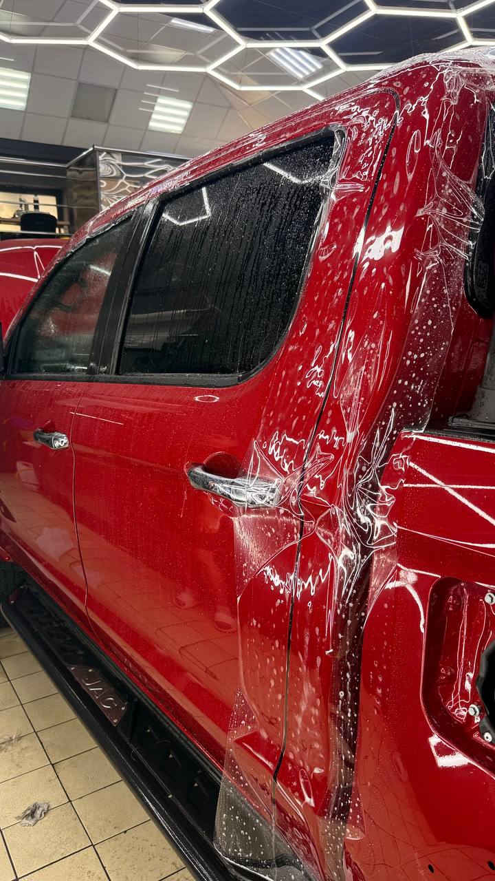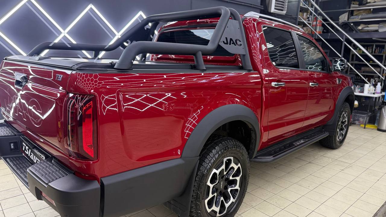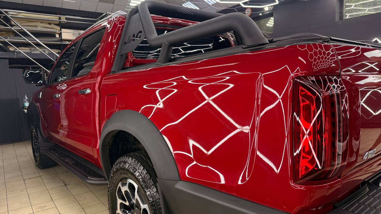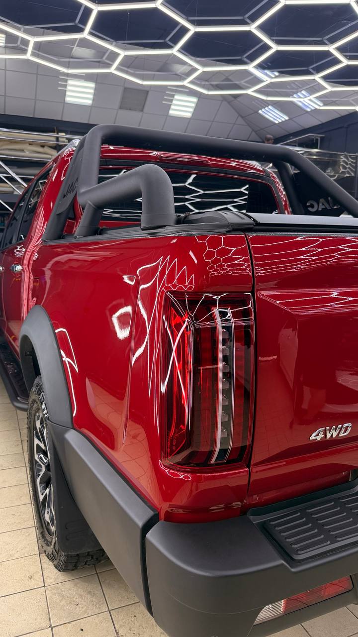 Яркий и большой пикап Jac T9 приехал на работы по полной оклейке пленкой кузова. Команда TSIauto рекомендует бронировать пленкой как минимум наиболее уязвимые места новых автомобилей, это защитит элементы кузова от сколов, царапин и мелких ДТП. Пленку гораздо легче заменить в будущем, без поиска мест где смогут хорошо окрасить поврежденный элемент и при последующей продаже авто не будет торга с покупателем. На самом деле пленка имеет больше преимуществ, про которые мы расскажем ниже.