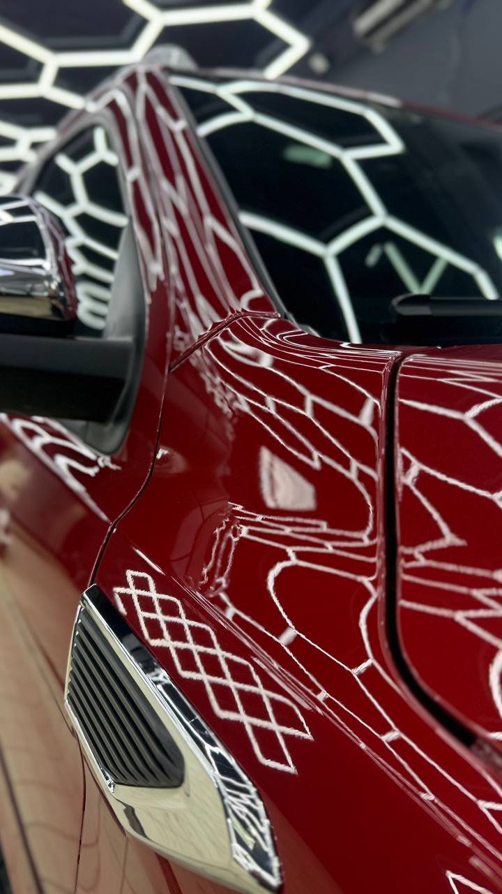 Далее не о процессе, а о конечном результате который получается на данном авто. Автомобиль будет меньше пачкаться, пленка обладает высоким гидрофобным эффектом и грязь не будет задерживаться на кузове. Ну и самое главное это защита, каждый оклеенный элемент выполнен с подворотом пленки по периметру. Сколы и царапины больше не угрожают кузовным элементам данного автомобиля, и если вдруг произойдет неприятная ситуация с мелким ДТП к примеру во дворе, с большей долей вероятности этот вопрос решиться заменой пленки на отдельном элементе. Так же автомобиль обрел на долго гарантированный блеск, так как пленка имеет самозаживляющий эффект и мелкие риски и царапинки будут затягиваться под воздействием температуры.