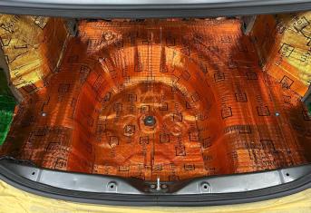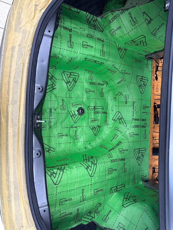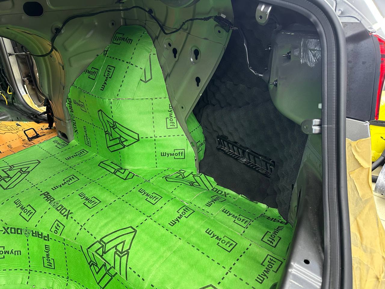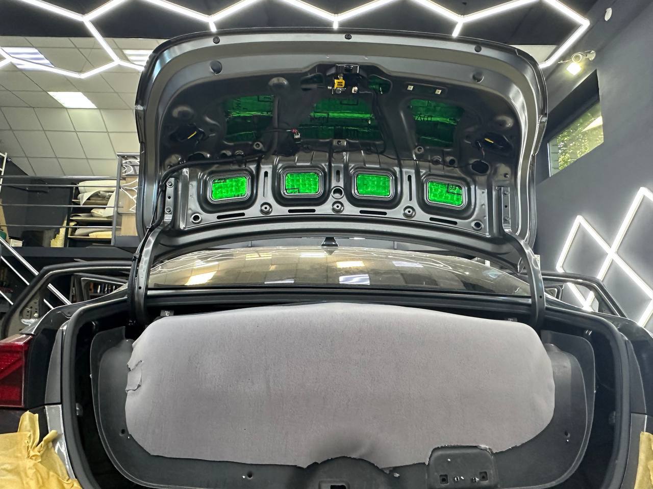 На крышку багажника укладываем Шумофф М2. На обшивку шумопоглатитель Герметон 7. По канту и клипсы укладываем Шумофф Absorber 5, а на открытую проводку Шумофф Specific.