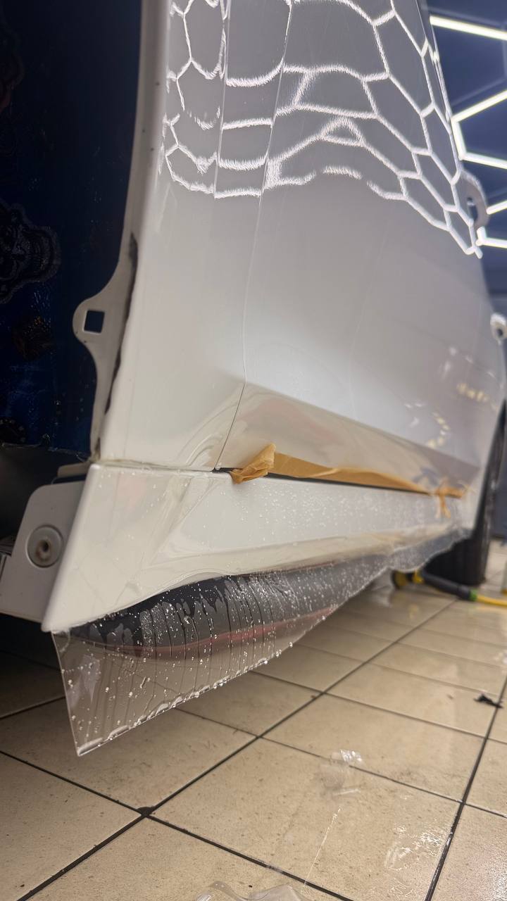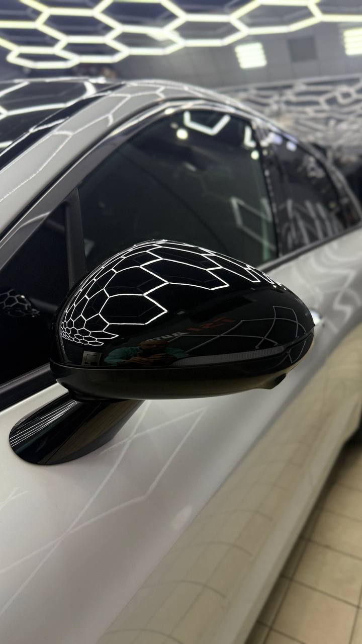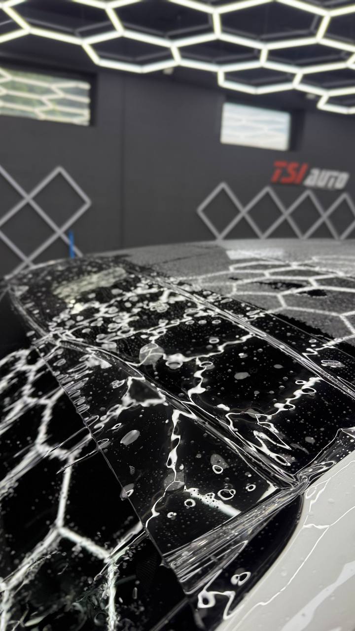 Далее не о процессе, а о конечном результате который получается на данном авто. Автомобиль будет меньше пачкаться, пленка обладает высоким гидрофобным эффектом и грязь не будет задерживаться на кузове. Ну и самое главное это защита, каждый оклеенный элемент выполнен с подворотом пленки по периметру. Сколы и царапины больше не угрожают ЛКП данного автомобиля, и если вдруг произойдет неприятная ситуация с мелким ДТП к примеру во дворе, с большей долей вероятности этот вопрос решиться заменой пленки на отдельном элементе. Так же автомобиль обрел на долго гарантированный блеск, так как пленка имеет самозаживляющий эффект и мелкие риски и царапинки будут затягиваться под воздействием температуры.