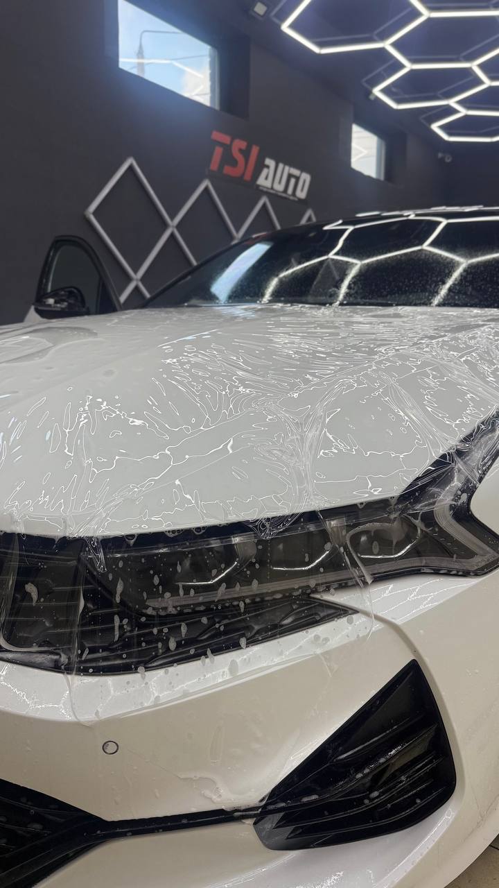 Kia K5 приехал на работы по оклейке пленкой зон наибольшего риска повреждения. Команда TSIauto рекомендует бронировать пленкой наиболее уязвимые места новых автомобилей, это защитит элементы кузова от сколов, царапин и мелких ДТП. Пленку гораздо легче заменить в будущем, без поиска мест где смогут хорошо окрасить поврежденный элемент и при последующей продаже авто не будет торга с покупателем. На самом деле пленка имеет больше преимуществ, про которые мы расскажем ниже.