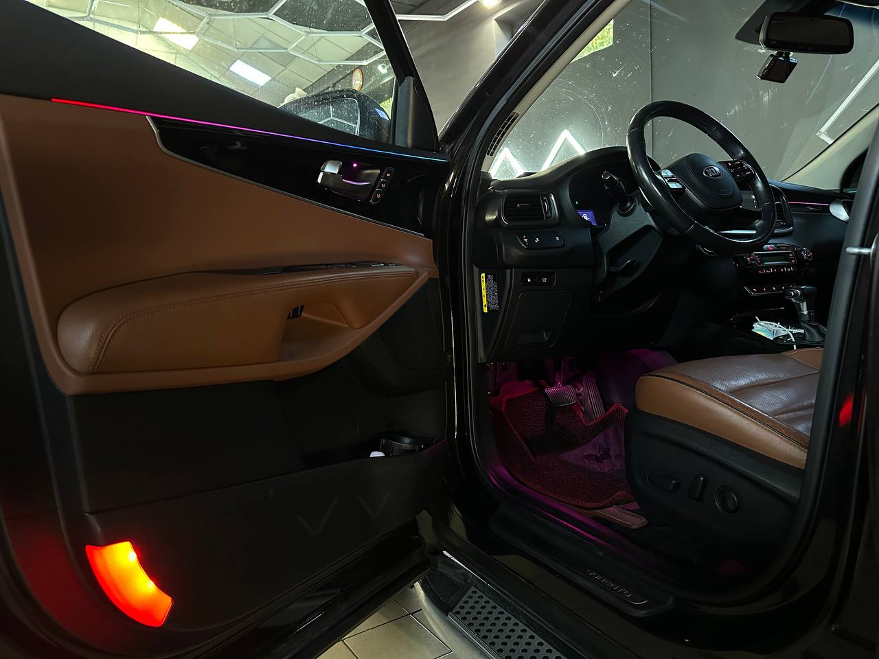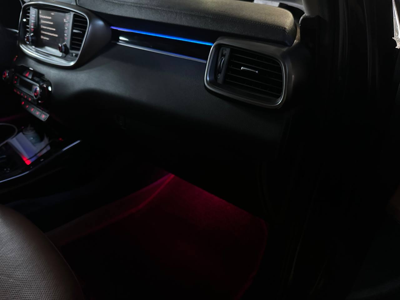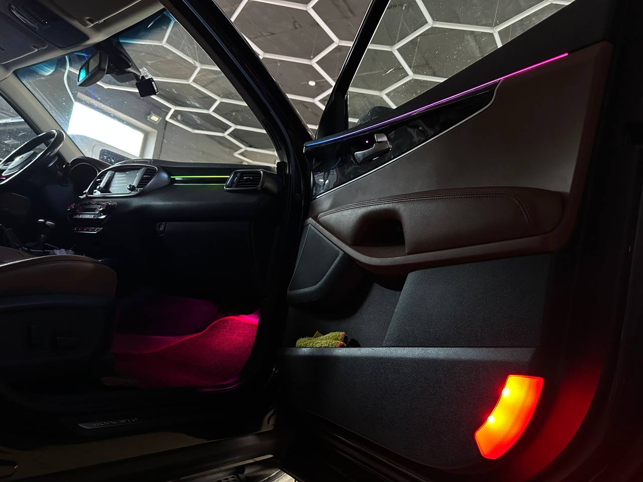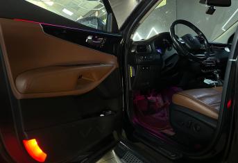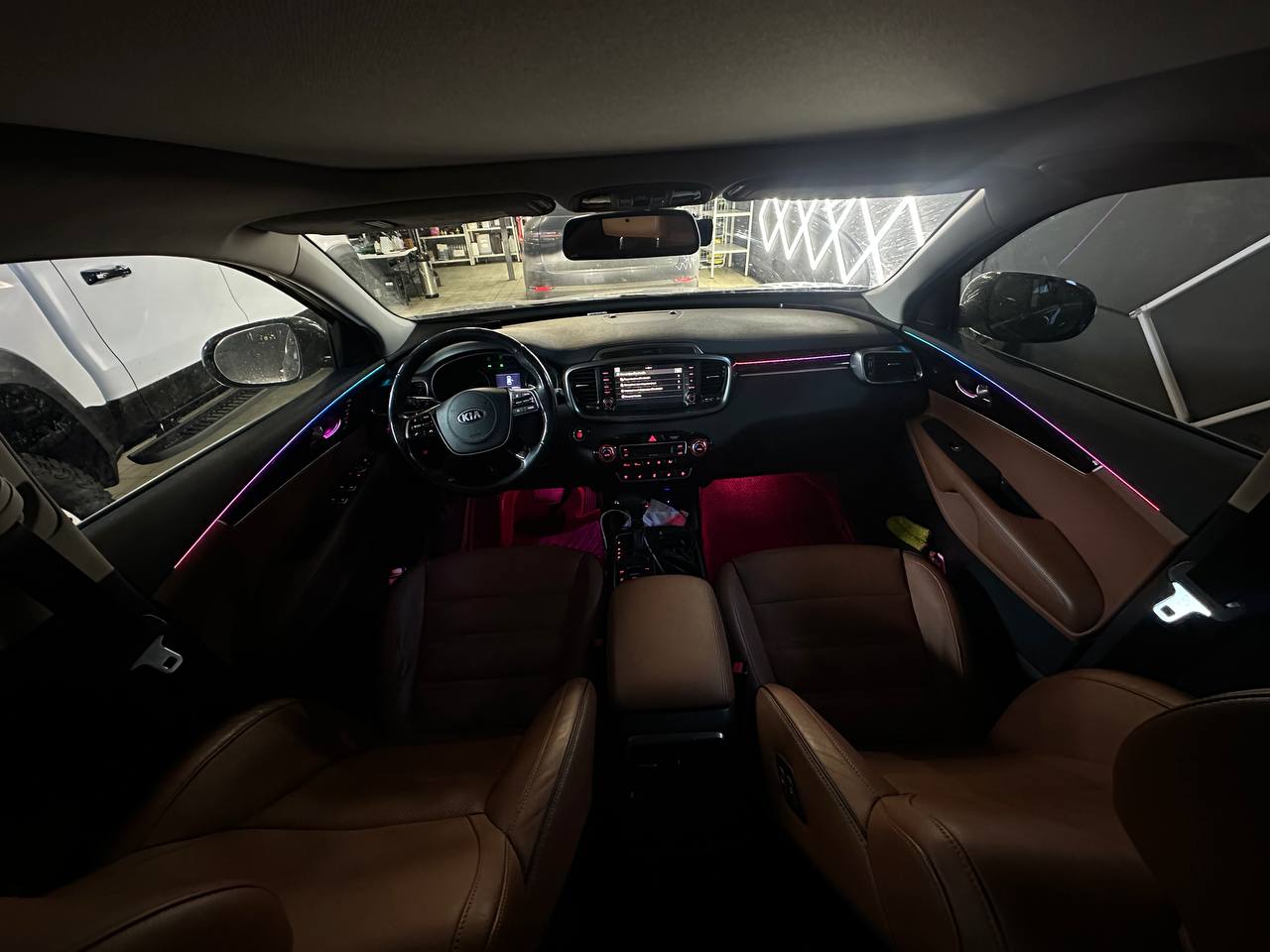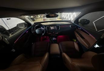 Kia Sorento приехал на работы по установке дополнительного оборудования, а в частности установка атмосферной подсветки салона с управлением из приложения смартфона.