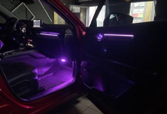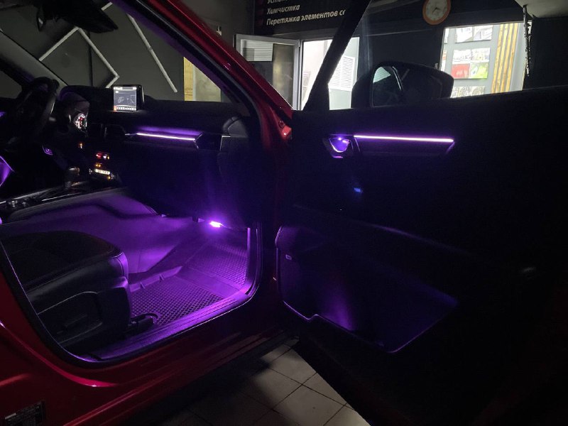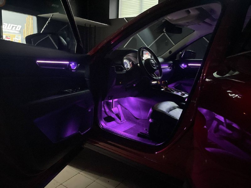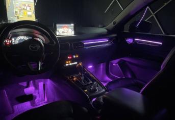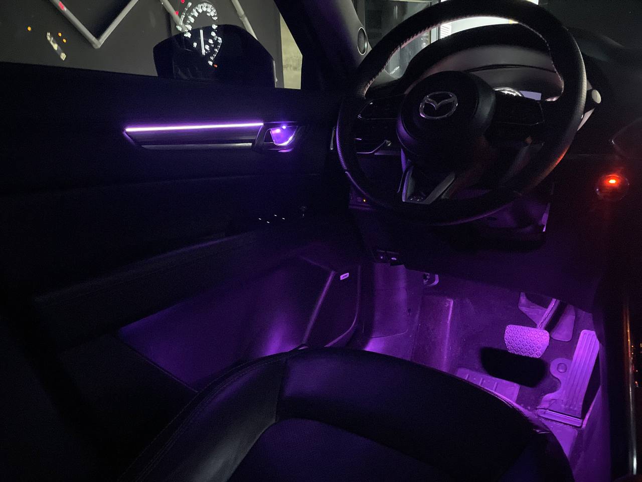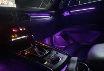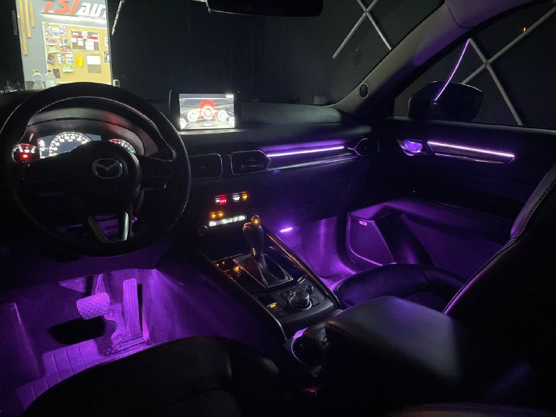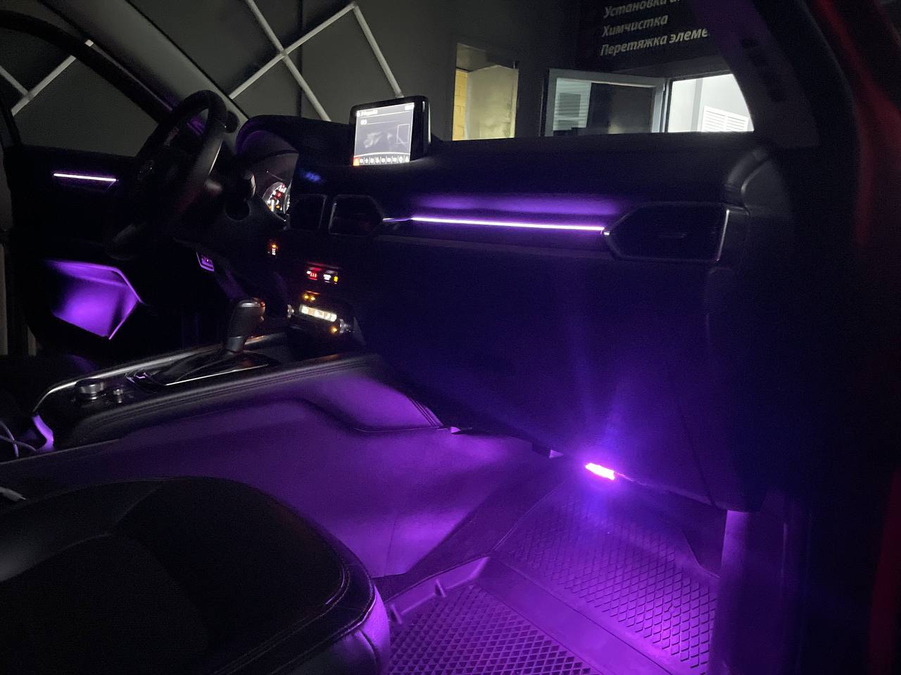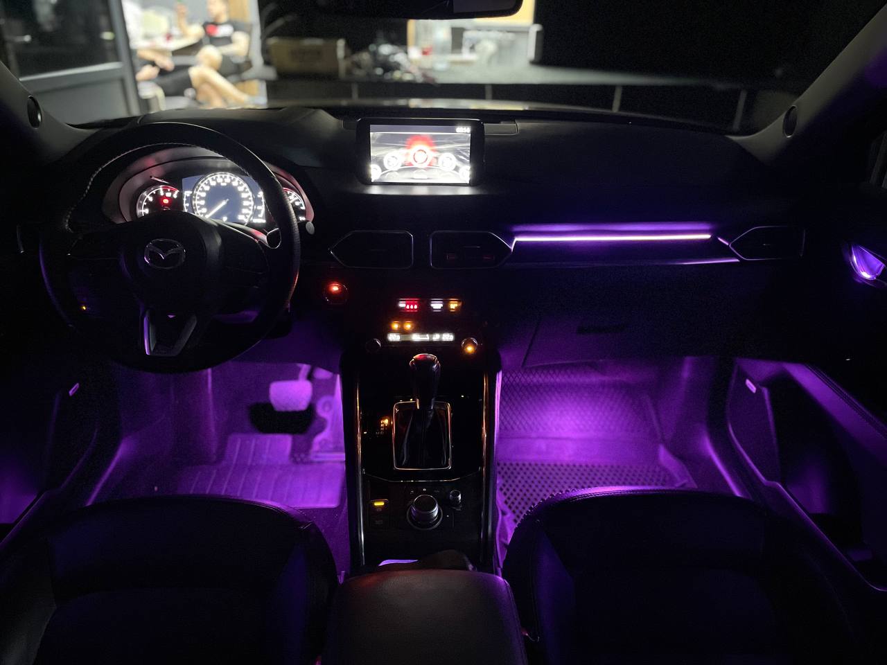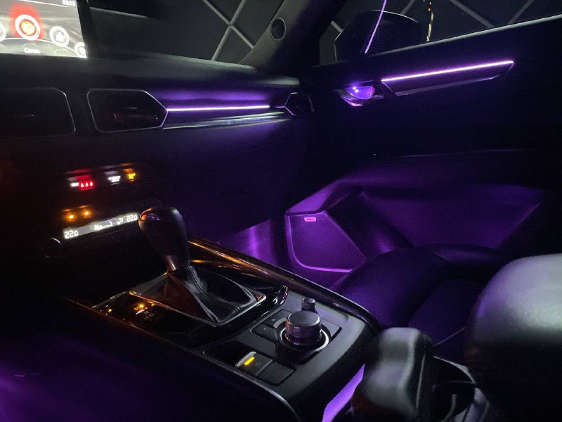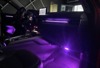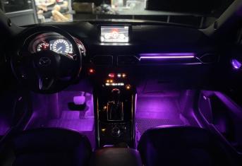 Mazda CX5 приехал на работы по установке дополнительного оборудования, а в частности установка атмосферной подсветки салона с управлением из приложения смартфона.