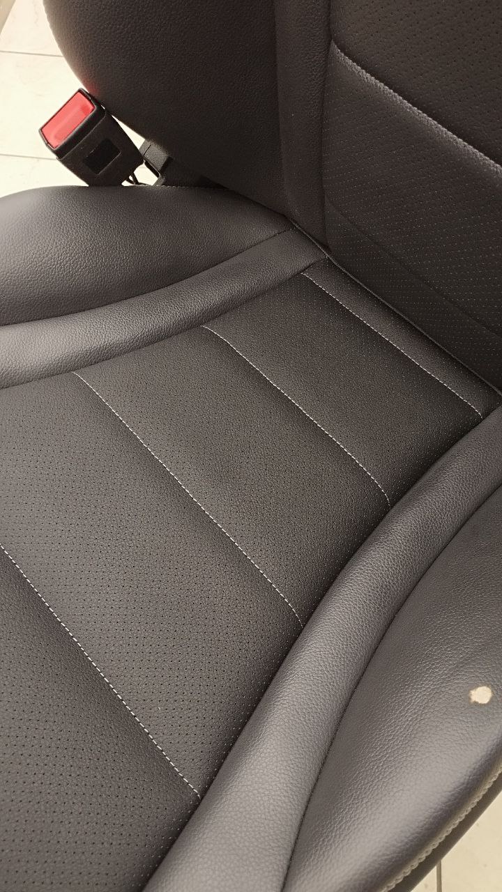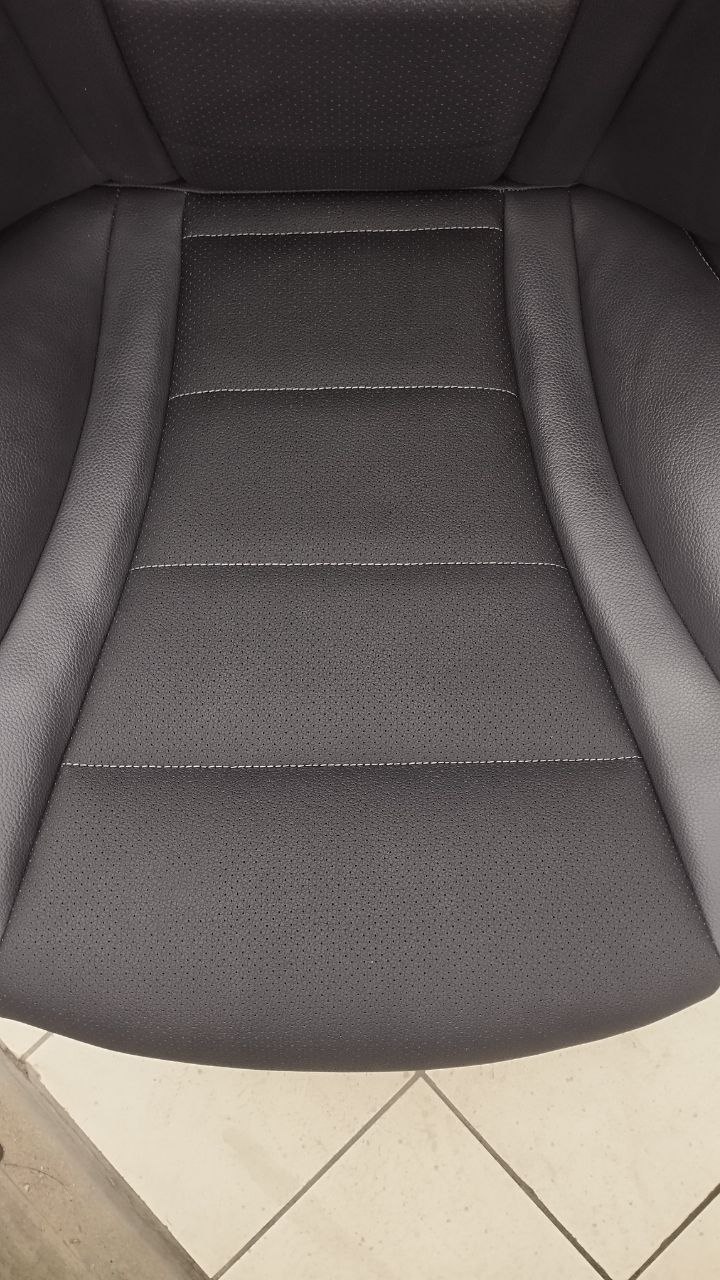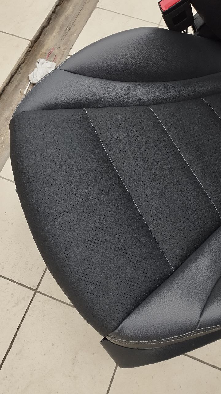 Задача была восстановить водительское сидение, мы подобрали экокожу с псевдоперфорацией на микрофибре максимально похожую по цвету и текстуре на заводской вариант.