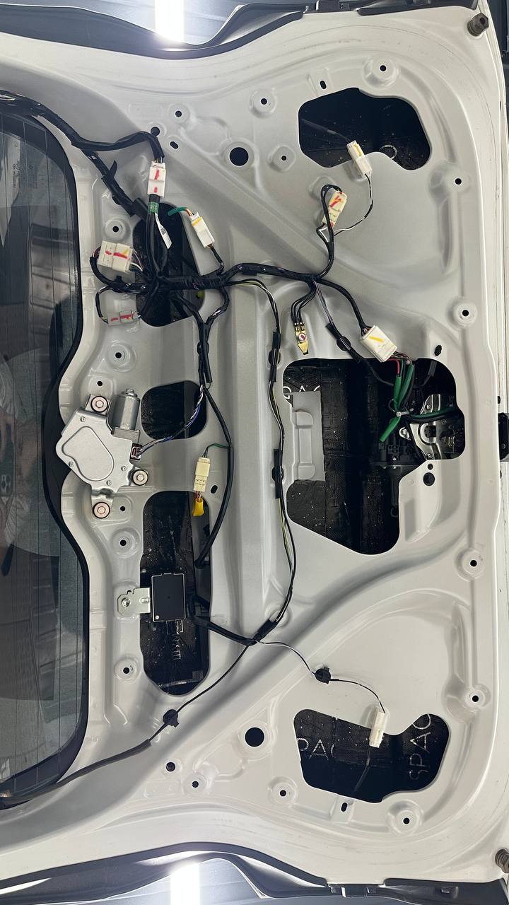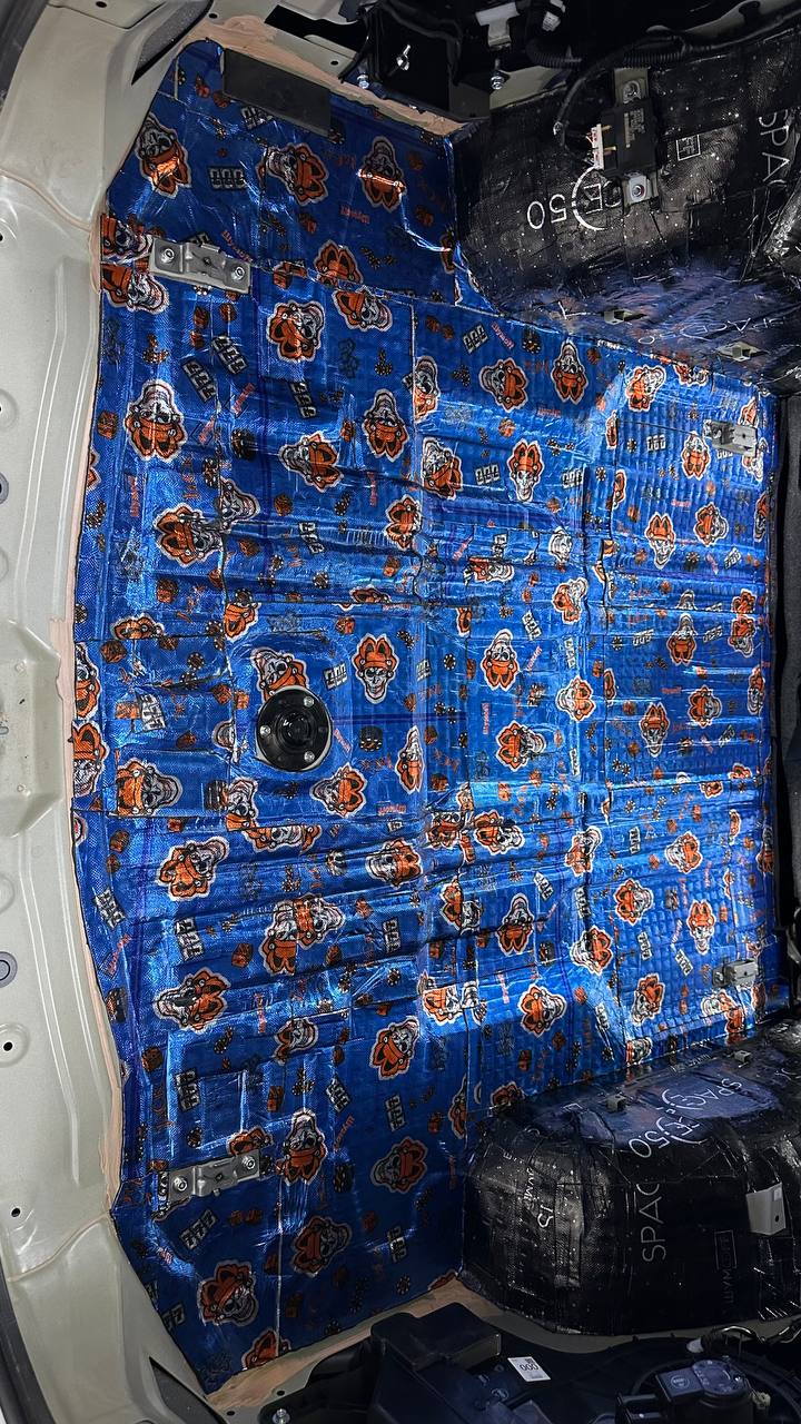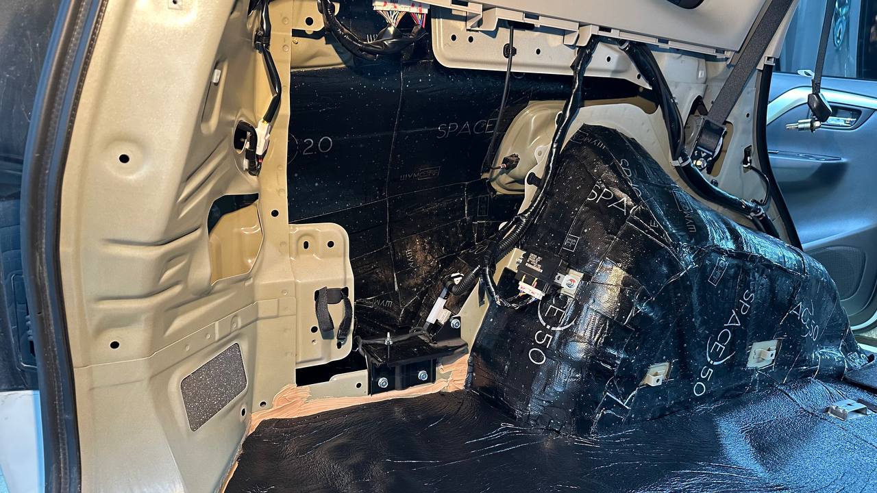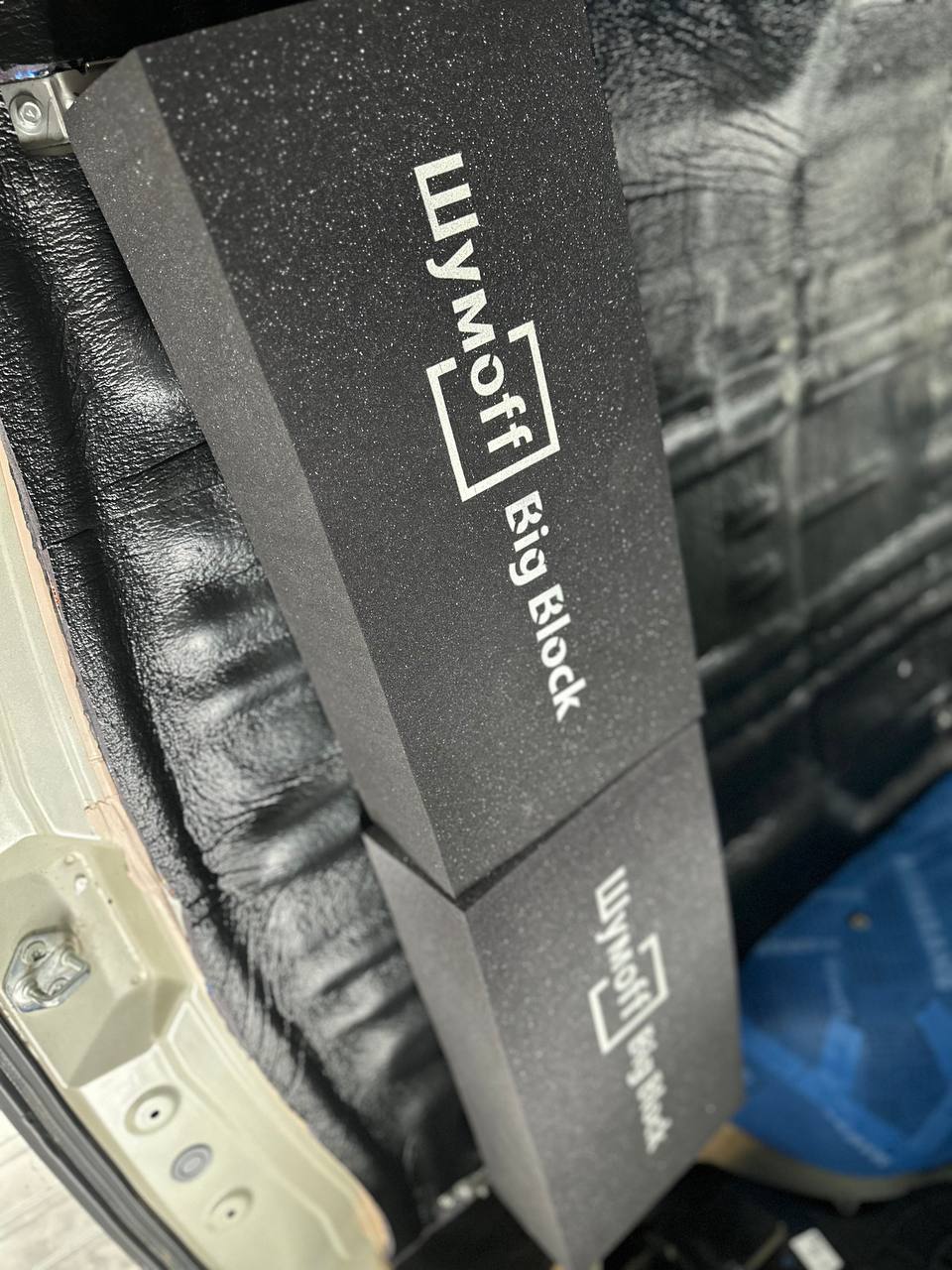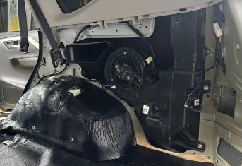 Крышка багажника обрабатывается Шумофф Space 2.0, включая обработку внутренней стенки вместо целлофана. На обшивку багажника наносим Шумофф Space 2.0 и шумопоглотитель Герметон А15. По канту обшивки, проводку и клипсы обрабатываем Шумофф Absorber 5. Всю проводку на двери обрабатываем Шумофф Specific.
