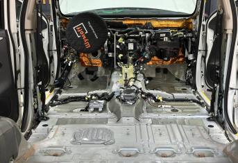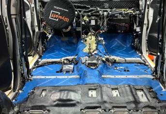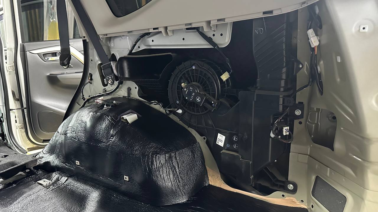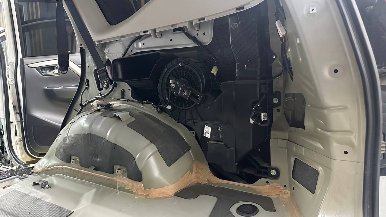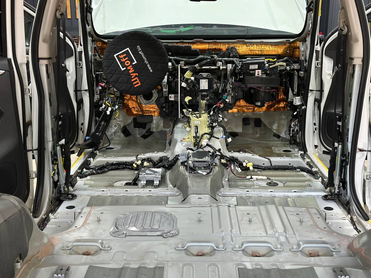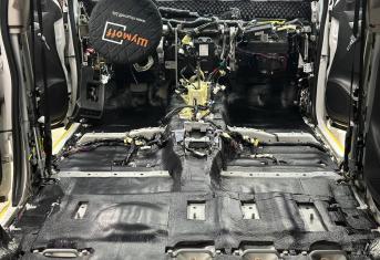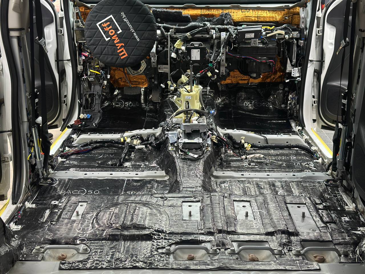 Приступаем к работам с полом и салоном авто. На разборку всего салона уходит около 1 часа. После чего мы подготавливаем поверхность, очистив ее от пыли и предварительно обезжирив.