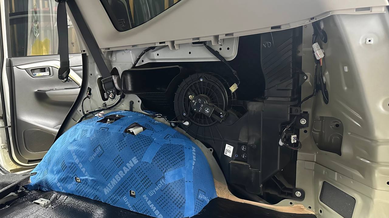 Третий слой – укладываем новую звукоотражающую мембрану Шумофф Membrane в самые вибронагруженные участки пола. От торпедо и до подъема задних сидений, так же поверх арок задних крыльев.