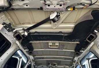 Владелец авто жаловался на низкочастотный звук в салоне при движении. Штатная шумоизоляция в Mitsubishi Pajero Sport уложена выборочно. Вибродемпфера настолько мало по отношению к общей площади металла кузова, что никакого эффекта она не приносит. Участки напыляемой виброизоляции есть под задним сидением, полосы на задних арках. Остальные части кузова – голый металл. Перед началом укладки новых материалов, мы в обязательном порядке проверяем заводскую шумоизоляцию на качество укладки. Плохо проклеенные участки заводской виброизоляции демонтируем. После этого обезжириваются все поверхности и приступаем к монтажу наших материалов.
