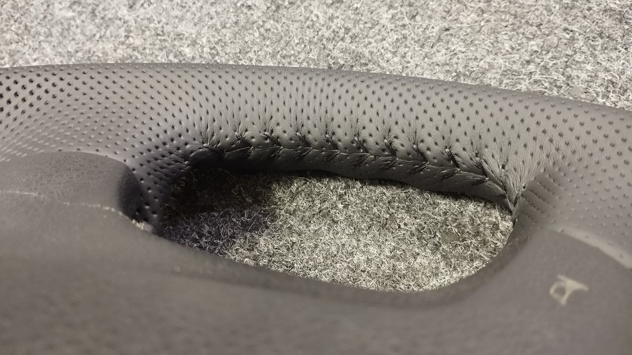 Как и в шумоизоляции, для пошива мы рекомендуем использовать исключительно оригинальные материалы. Основная причина: очень дорого выходит переделка. А учитывая, что автомобиль часто эксплуатируется и на материал воздействуют механические и температурные нагрузки. Для руля и ручки КПП мы использовали натуральную кожу производства Италия. Клей и нитки также оригинальные, мы не экономим на мелочах.