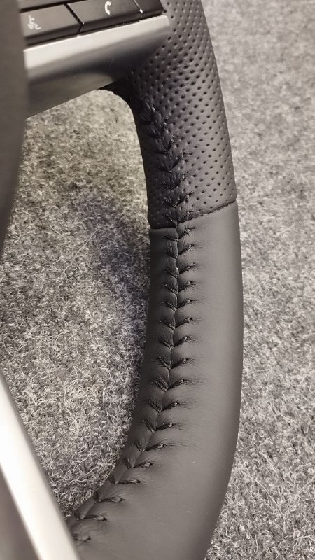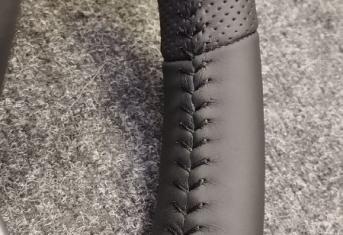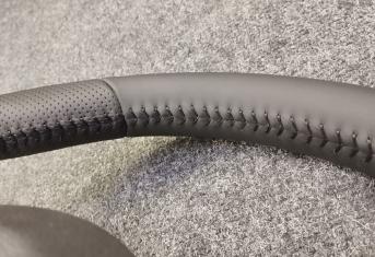 Как и в шумоизоляции авто, в пошиве мы используем исключительно оригинальные материалы, которые используются в отделке премиальных автомобилей. Основная причина: очень дорого выходит переделка. А учитывая, что автомобиль часто эксплуатируется и на материал воздействуют не только солнечные лучи и температура, но и механические нагрузки. Для руля мы использовали натуральную кожу итальянского производства гладкой текстуры и кожу с псевдо-перфорацией. Клей и нити также оригинальные, мы не экономим на мелочах.