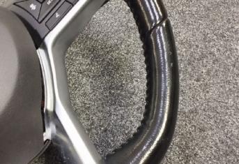 За время эксплуатации кожа на руле стала гладкой и появился блеск. При перетяжке руля Nissan X-Trail мы применили гладкую натуральную кожу и с псевдо-перфорацией. Клиент сохранил заводской шов "елочка". В итоге получился стильный и очень приятный на ощупь руль, который прослужит долгие годы при правильном уходе за ним. Рекомендуем проводить плановую чистку кожаного руля, для сохранения на долгое время в первозданном виде, раз в 3-4 месяца и это можно сделать в нашем детейлинге TSIauto.