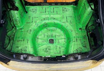 На крышку багажника укладываем виброизоляцию Шумофф М2. На обшивку Шумофф Герметон 7.