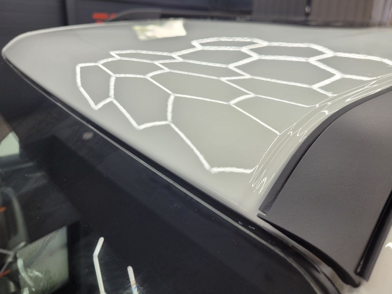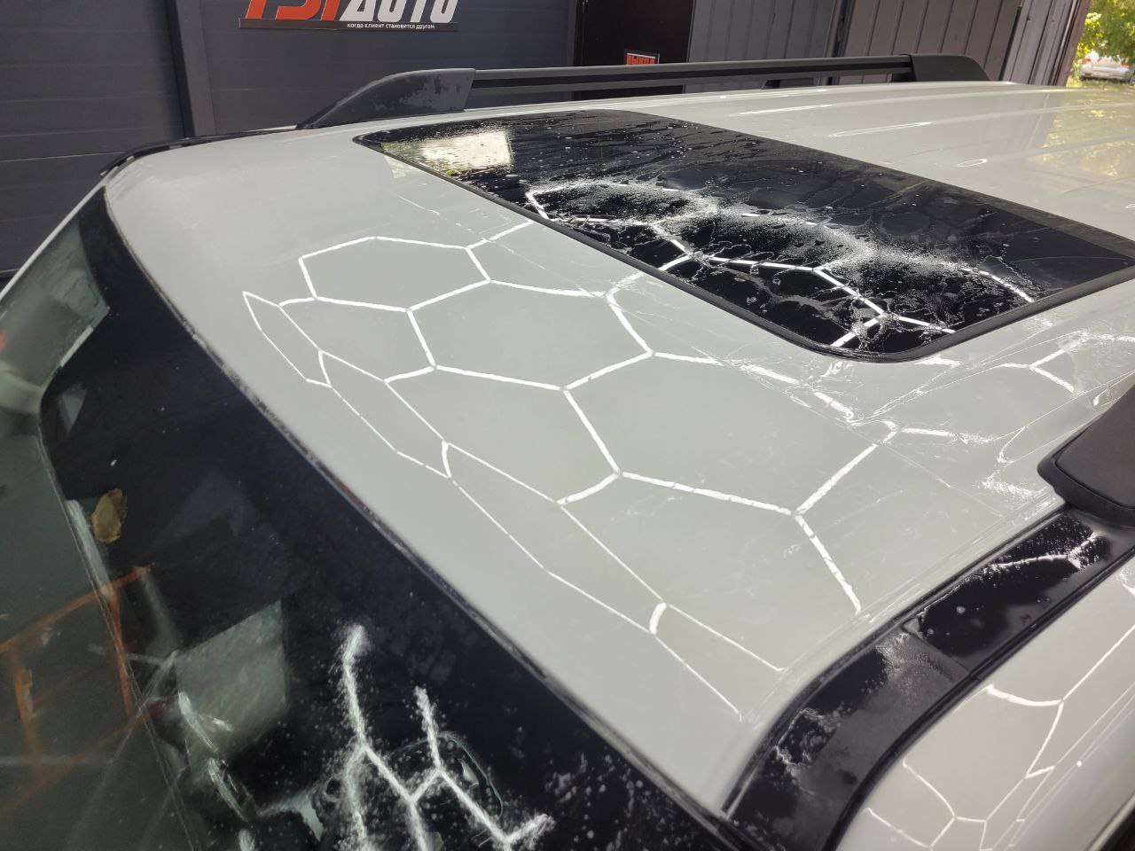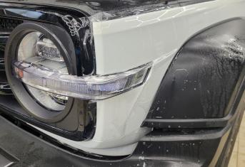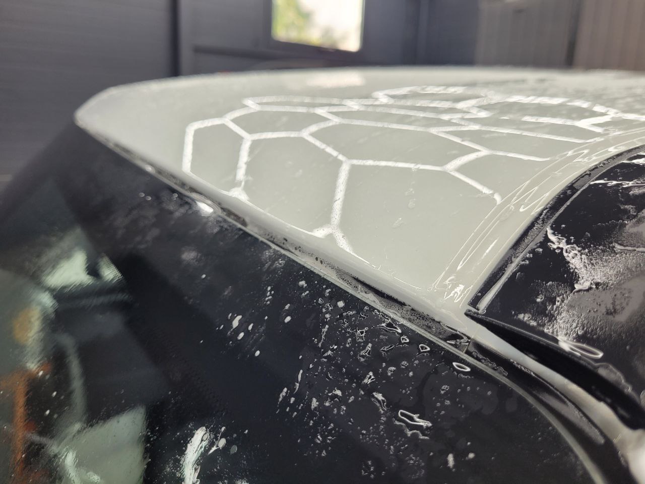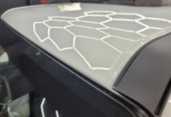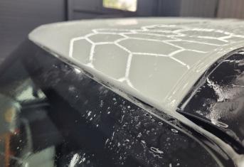 Далее не о процессе, а о конечном результате который получается на данном авто. Автомобиль будет меньше пачкаться, пленка обладает высоким гидрофобным эффектом и грязь не будет задерживаться на кузове. Ну и самое главное это защита, каждый оклеенный элемент выполнен с подворотом пленки по периметру. Сколы и царапины больше не угрожают оклеенным кузовным элементам данного автомобиля, и если вдруг произойдет неприятная ситуация с мелким ДТП к примеру во дворе, с большей долей вероятности этот вопрос решиться заменой пленки на отдельном элементе. Так же автомобиль обрел на долго гарантированный блеск, так как пленка имеет самозаживляющий эффект и мелкие риски и царапинки будут затягиваться под воздействием температуры.