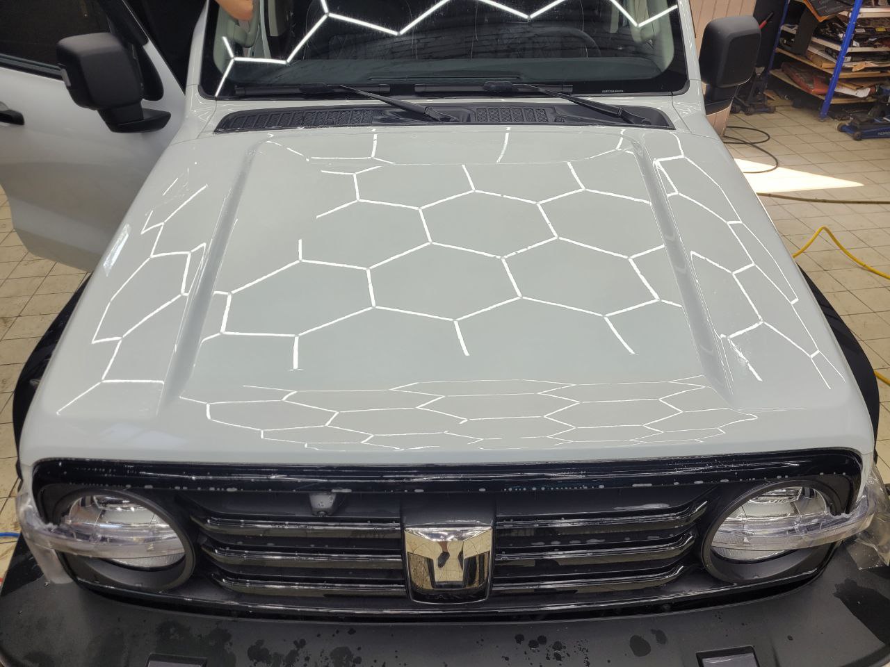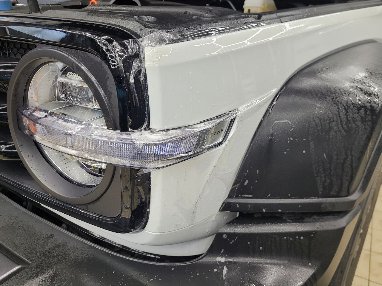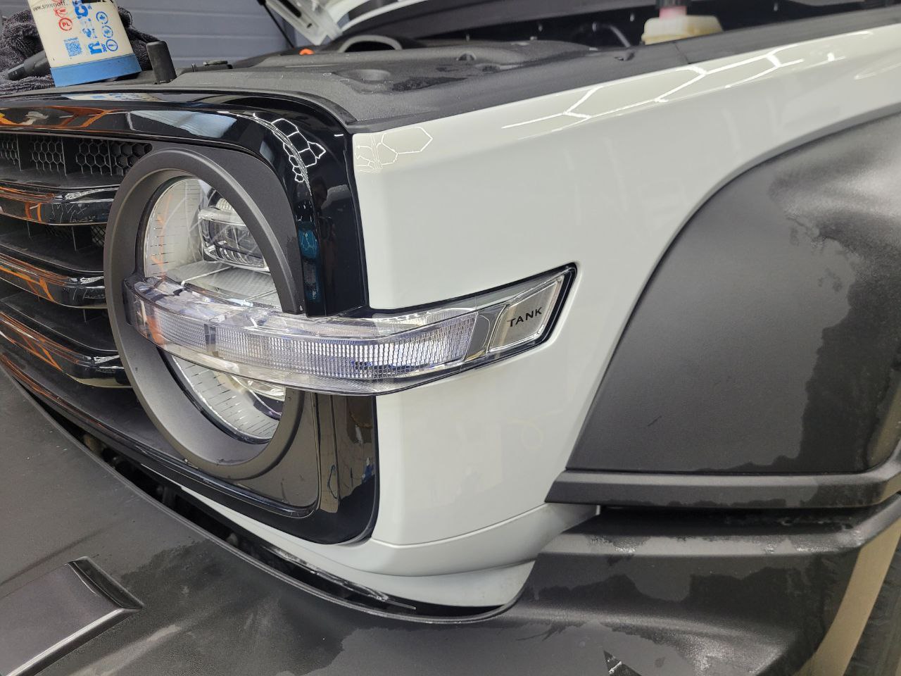 Танк 300 приехал на работы по оклейке пленкой зон наибольшего риска повреждения. Команда TSIauto рекомендует бронировать пленкой наиболее уязвимые места новых автомобилей, это защитит элементы кузова от сколов, царапин и мелких ДТП. Пленку гораздо легче заменить в будущем, без поиска мест где смогут хорошо окрасить поврежденный элемент и при последующей продаже авто не будет торга с покупателем. На самом деле пленка имеет больше преимуществ, про которые мы расскажем ниже.
