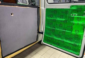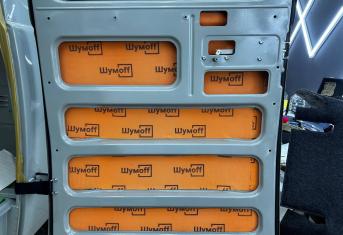 Вторую стенку двери обрабатываем Шумофф М2. Саму обшивку двери локально оклеиваем виброизоляцией Шумофф М2 для снижения резонанса пластика и полностью закрываем новым шумопоглощающим материалом Шумофф Ultimat W17. По канту обшивки двери и клипсы обрабатываем Шумофф Absorber 5, а на открытую проводку Шумофф Specific.