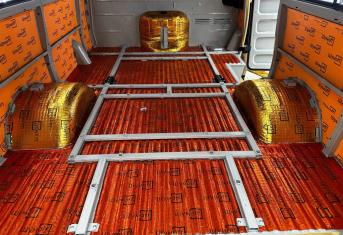 Вторым слоем для шумоизоляции пола мы используем Шумофф Парадокс по всему полу, аркам и моторному щиту. Это новый материал от производителя Шумофф, который включает в себя сразу два слоя и кратно повышают результативность. По бокам кузова наносим вспененный полиэтилен толщиной 4мм - Шумофф П4В.