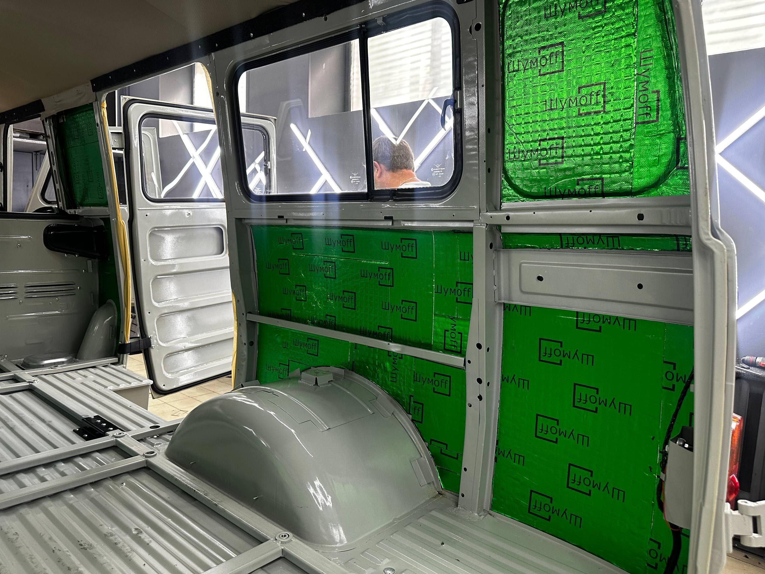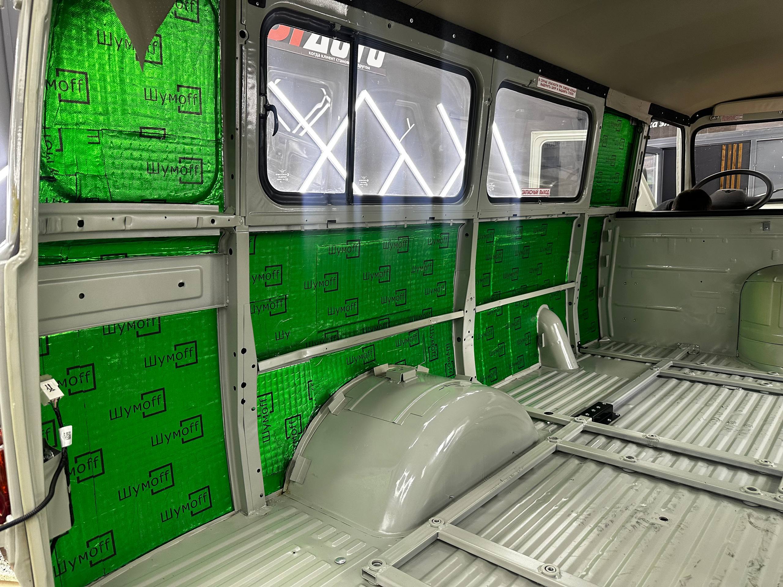 Сегодня мы подготовили отчёт о комплексной шумоизоляции авто российского производства УАЗ Буханка в пакете «Комфорт». Стоимость выполнения работ вы можете уточнить у наших менеджеров по телефону. Выполнили эту работу мы за 1 рабочий день, благодаря слаженной работе сотрудников детейлинг центра и предварительной подготовке материалов.