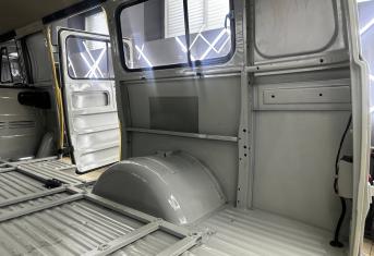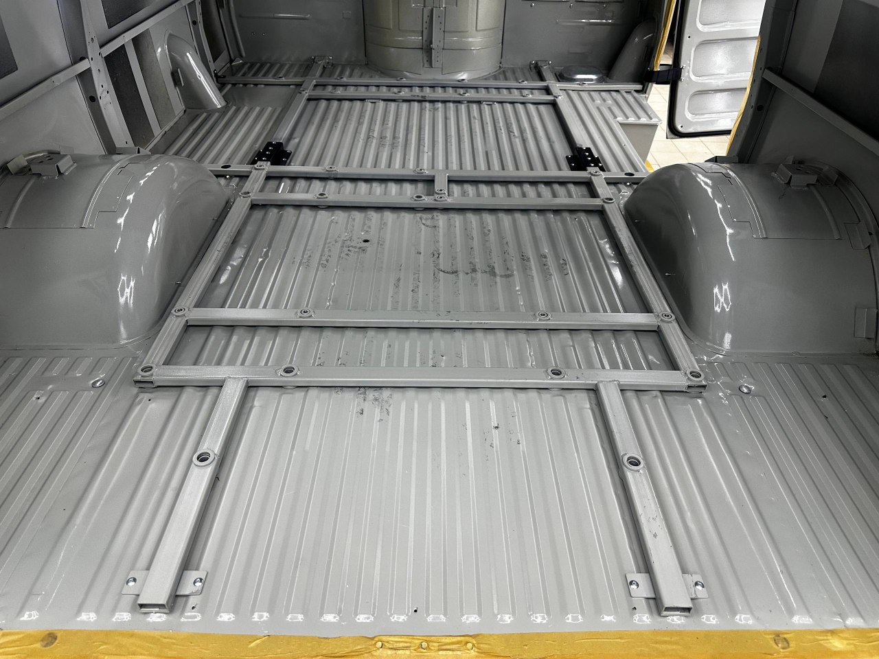 Приступаем к работам с полом, на разборку всего салона уходит около 1 часа. После чего мы подготавливаем поверхность, очистив ее от пыли и предварительно обезжирив.